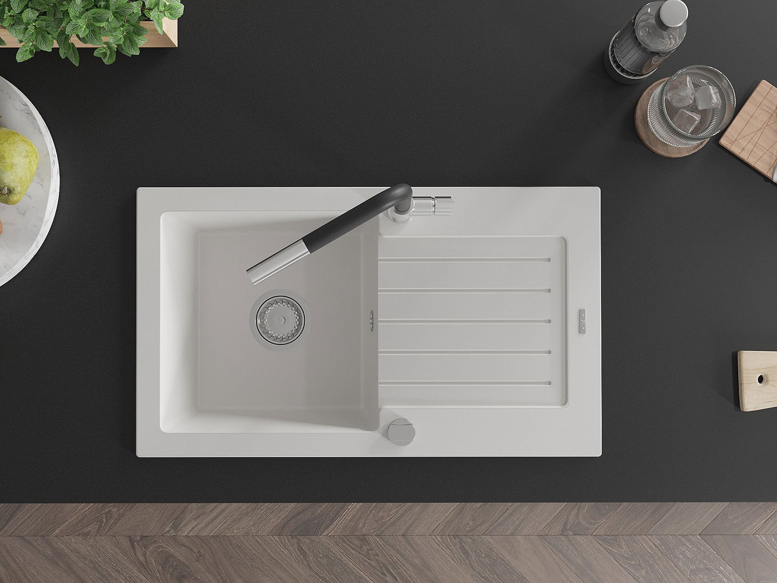 L'évier est fabriqué en granit de haute qualité. Il constitue un complément élégant et surtout pratique pour toute cuisine, quel que soit son style. La qualité et la durabilité du granit garantissent de nombreuses années d'utilisation.