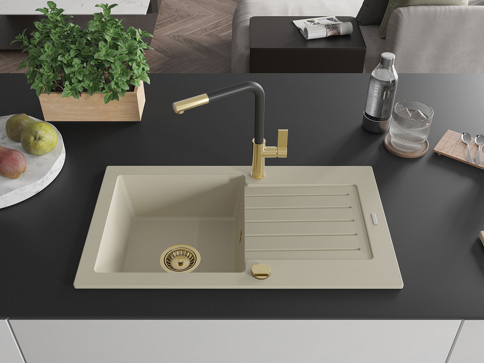 L'évier est fabriqué en granit de haute qualité. Il constitue un complément élégant et surtout pratique pour toute cuisine, quel que soit son style. La qualité et la durabilité du granit garantissent de nombreuses années d'utilisation.
