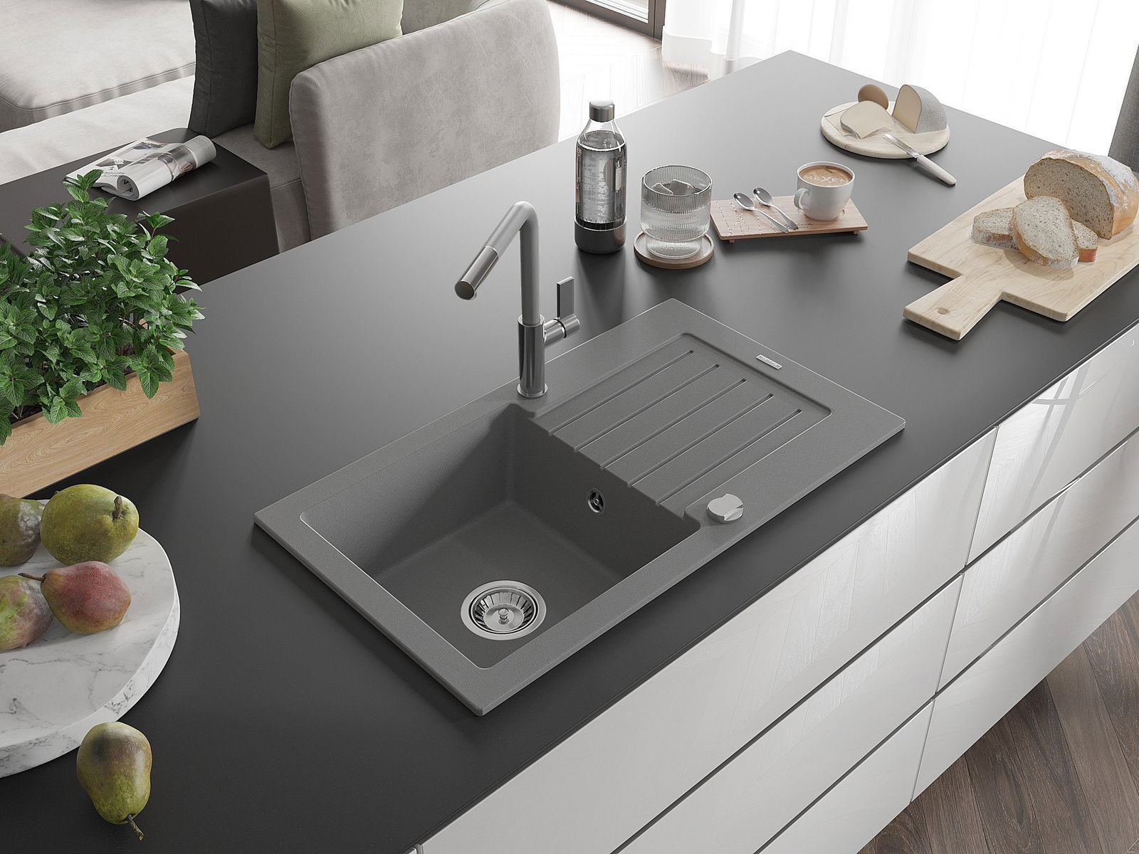 L'évier est fabriqué en granit de haute qualité. Il constitue un complément élégant et surtout pratique pour toute cuisine, quel que soit son style. La qualité et la durabilité du granit garantissent de nombreuses années d'utilisation.