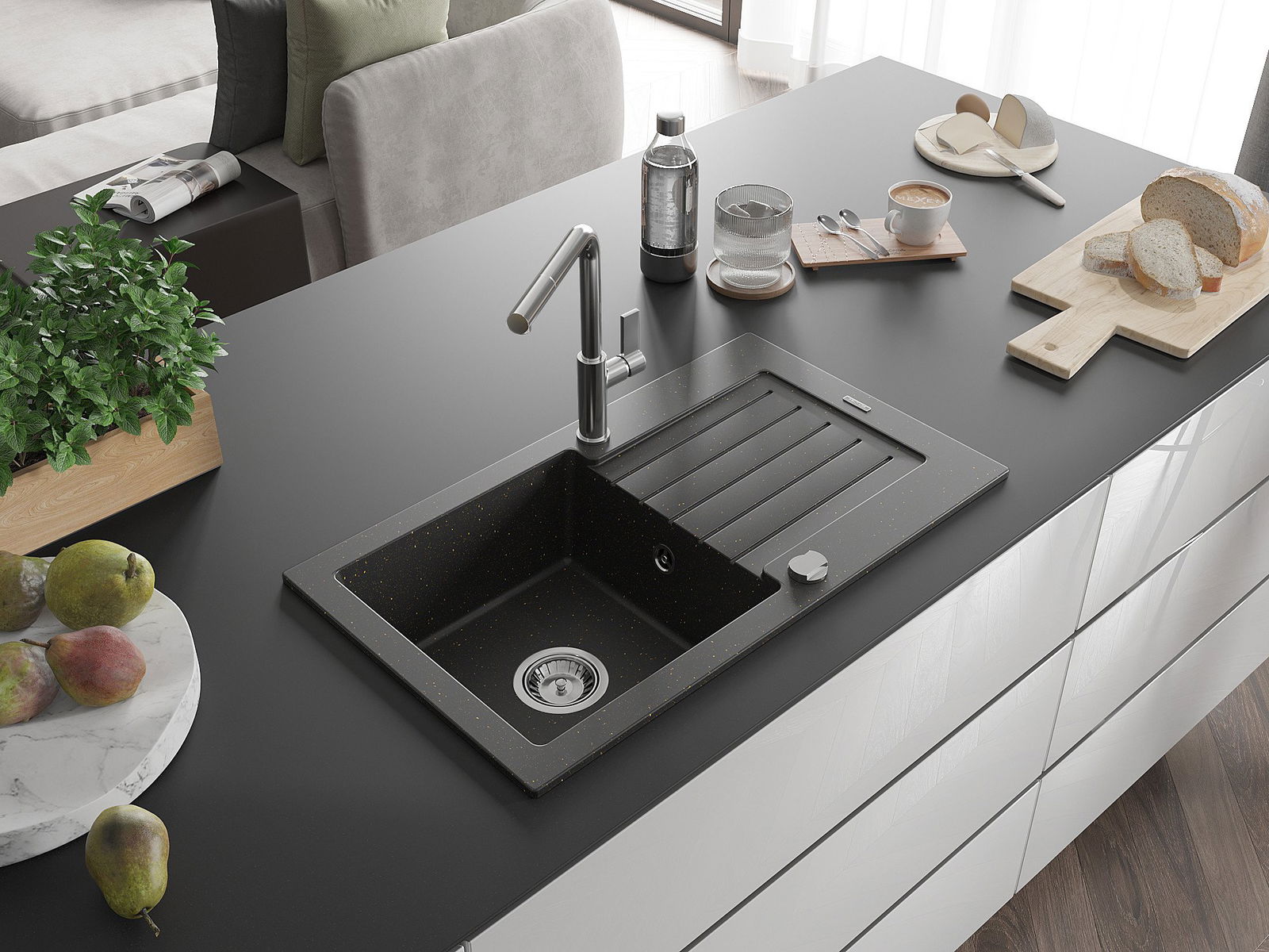 L'évier est fabriqué en granit de haute qualité. Il constitue un complément élégant et surtout pratique pour toute cuisine, quel que soit son style. La qualité et la durabilité du granit garantissent de nombreuses années d'utilisation.