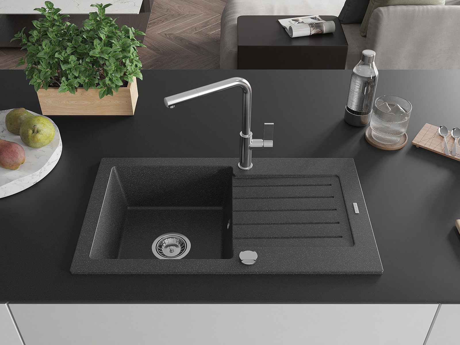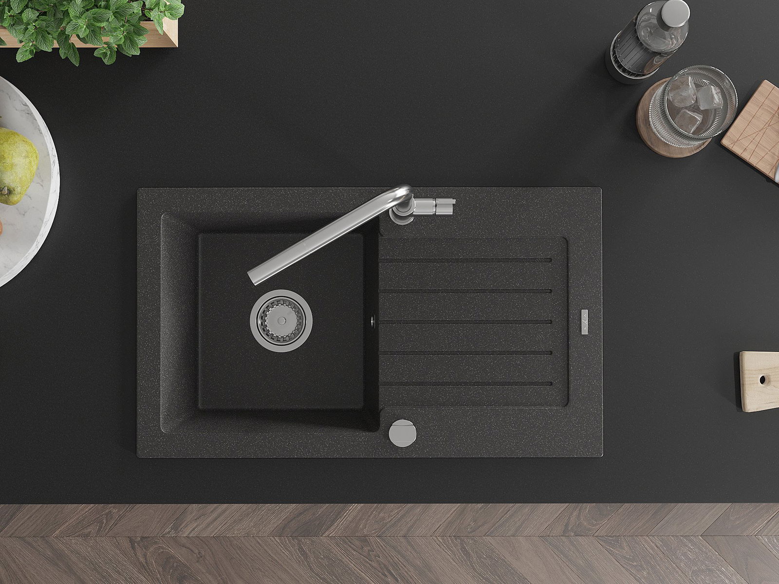 L'évier est fabriqué en granit de haute qualité. Il constitue un complément élégant et surtout pratique pour toute cuisine, quel que soit son style. La qualité et la durabilité du granit garantissent de nombreuses années d'utilisation.