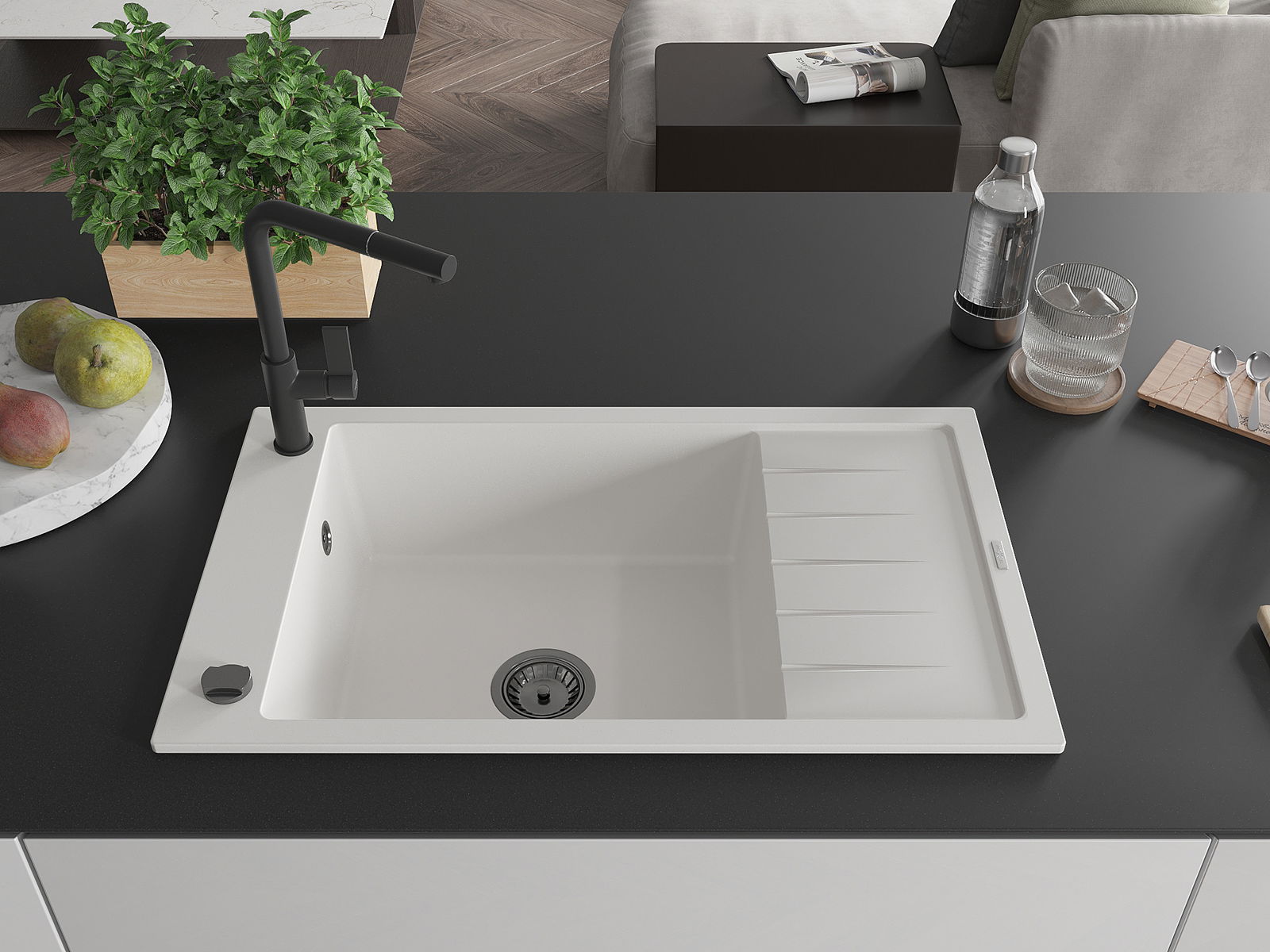 L'évier est fabriqué en granit de haute qualité. Il constitue un complément élégant et surtout pratique pour toute cuisine, quel que soit son style. La qualité et la durabilité du granit garantissent de nombreuses années d'utilisation.
