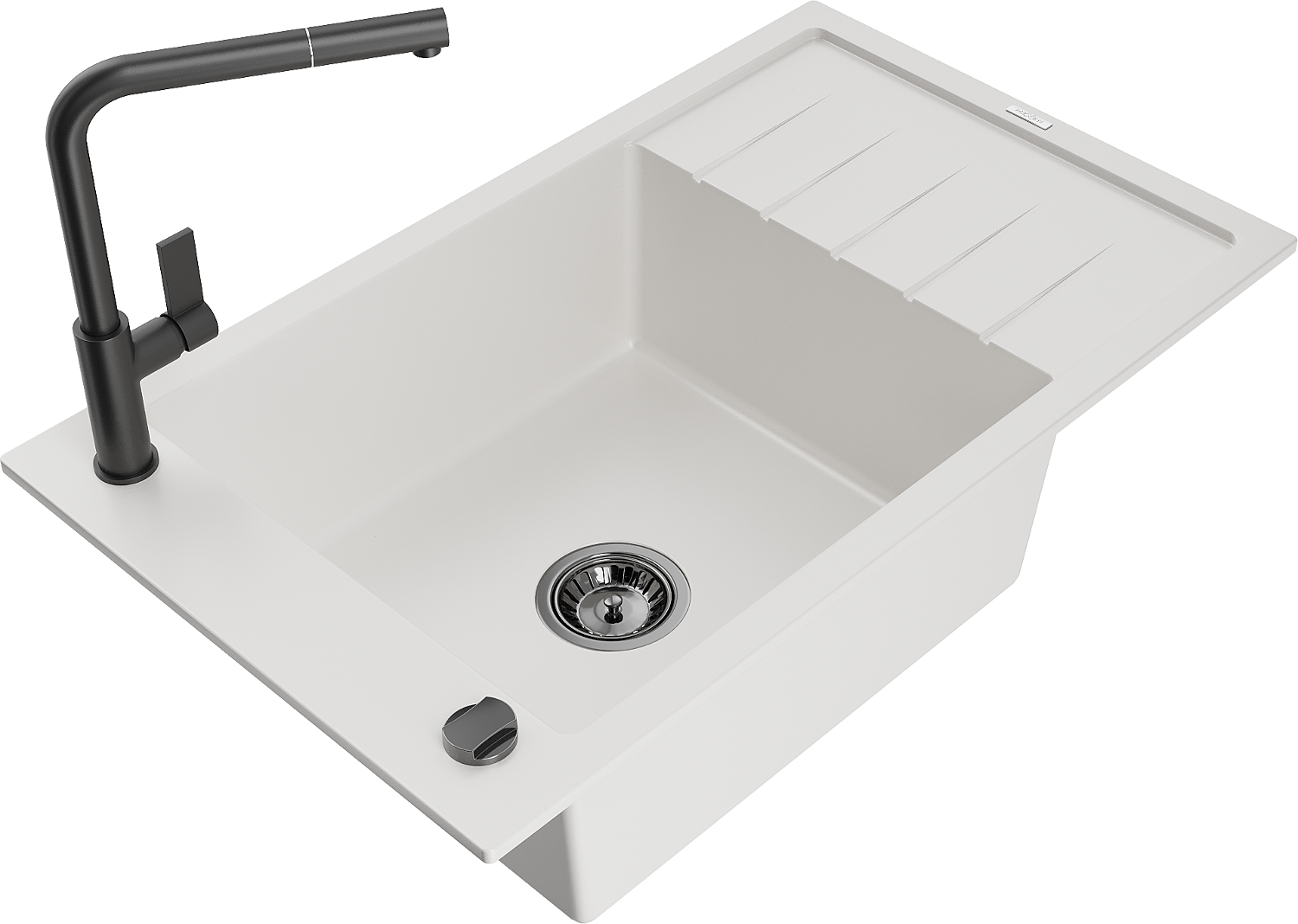 Mexen Elias évier de cuisine en granit 1 bac avec égouttoir et robinet de cuisine Flora, blanc - 6511-20-670401-70-B