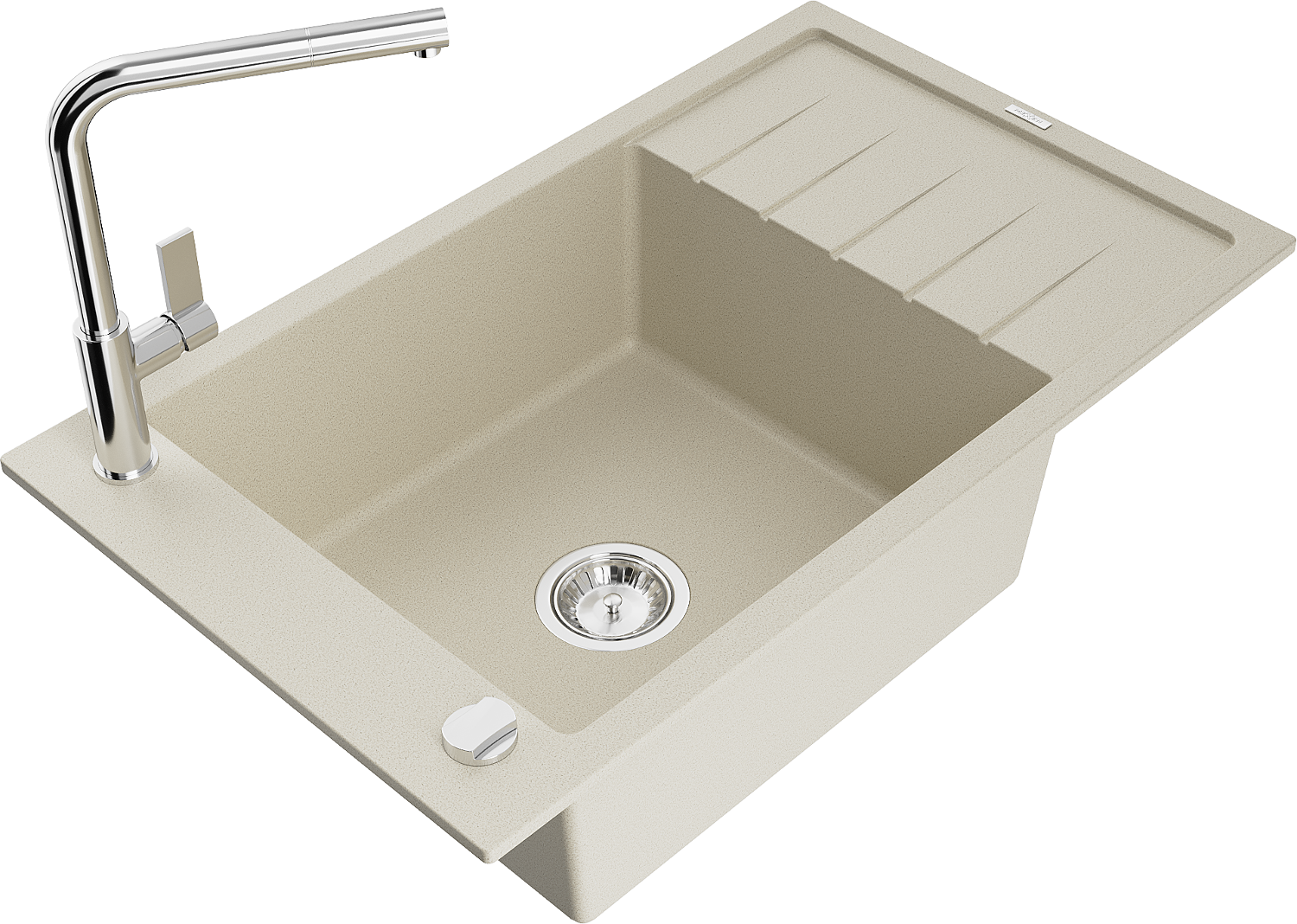 Mexen Elias évier en granit 1 bac avec égouttoir et robinet de cuisine Flora, beige - 6511-69-670401-00