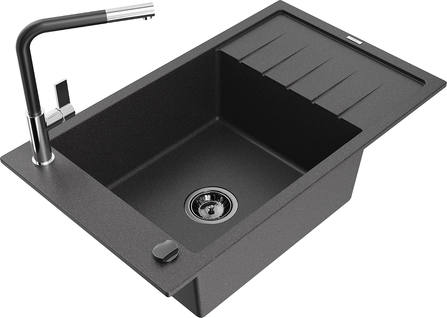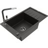 Mexen Elias évier de cuisine en granit 1 bac avec égouttoir et mitigeur Flora, noir moucheté - 6511-76-670401-07-B