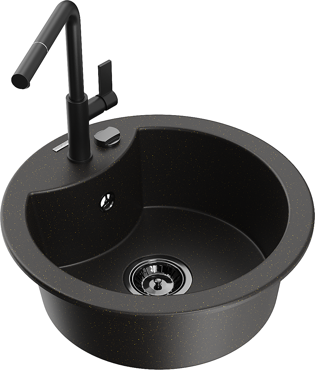 Mexen Diego évier en granit 1 bac avec mitigeur de cuisine Flora, noir/or métallique - 6512-75-670401-70-B