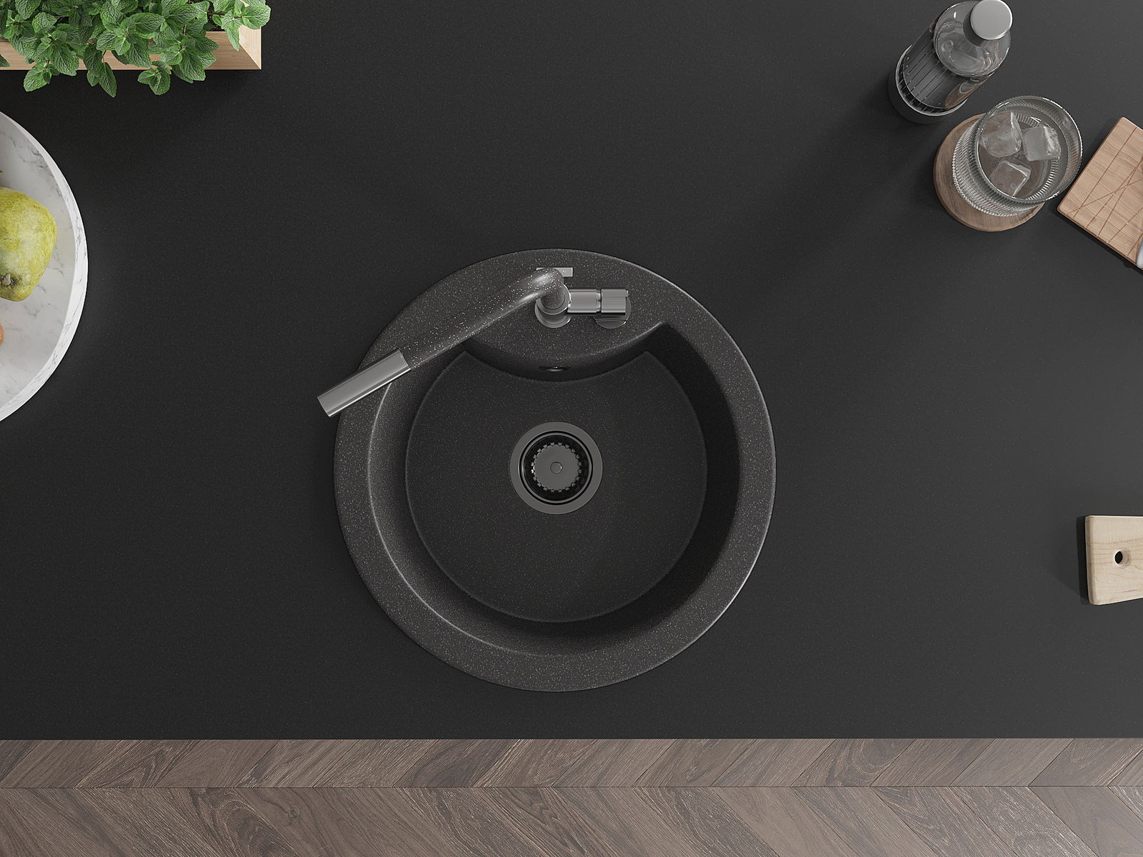 L'évier est doté d'un trou fraisé de 35 mm de diamètre pour l'auto-perçage. Il peut notamment accueillir un distributeur de liquide, ce qui éliminera les bouteilles en plastique dans la cuisine et lui apportera une finition élégante.