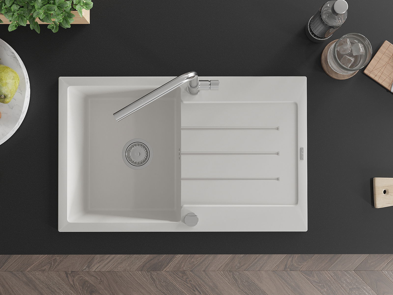 L'évier est fabriqué en granit de haute qualité. Il constitue un complément élégant et surtout pratique pour toute cuisine, quel que soit son style. La qualité et la durabilité du granit garantissent de nombreuses années d'utilisation.