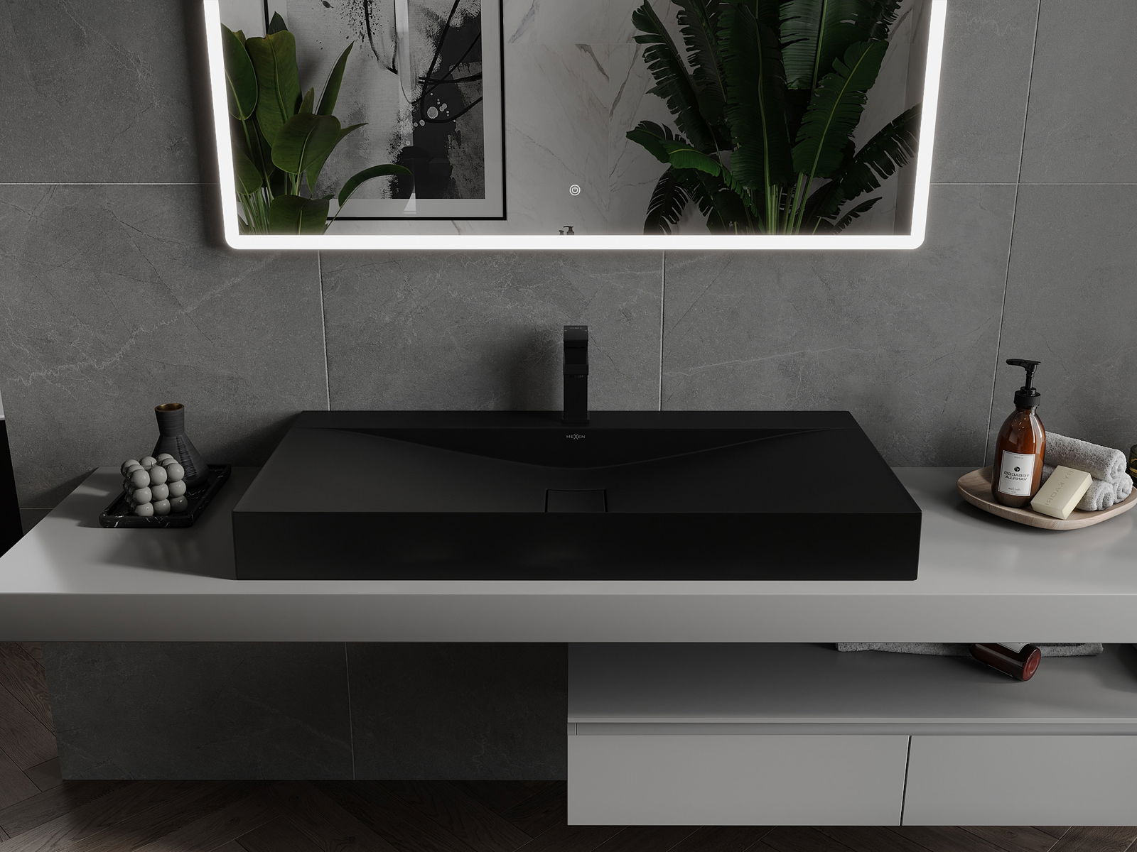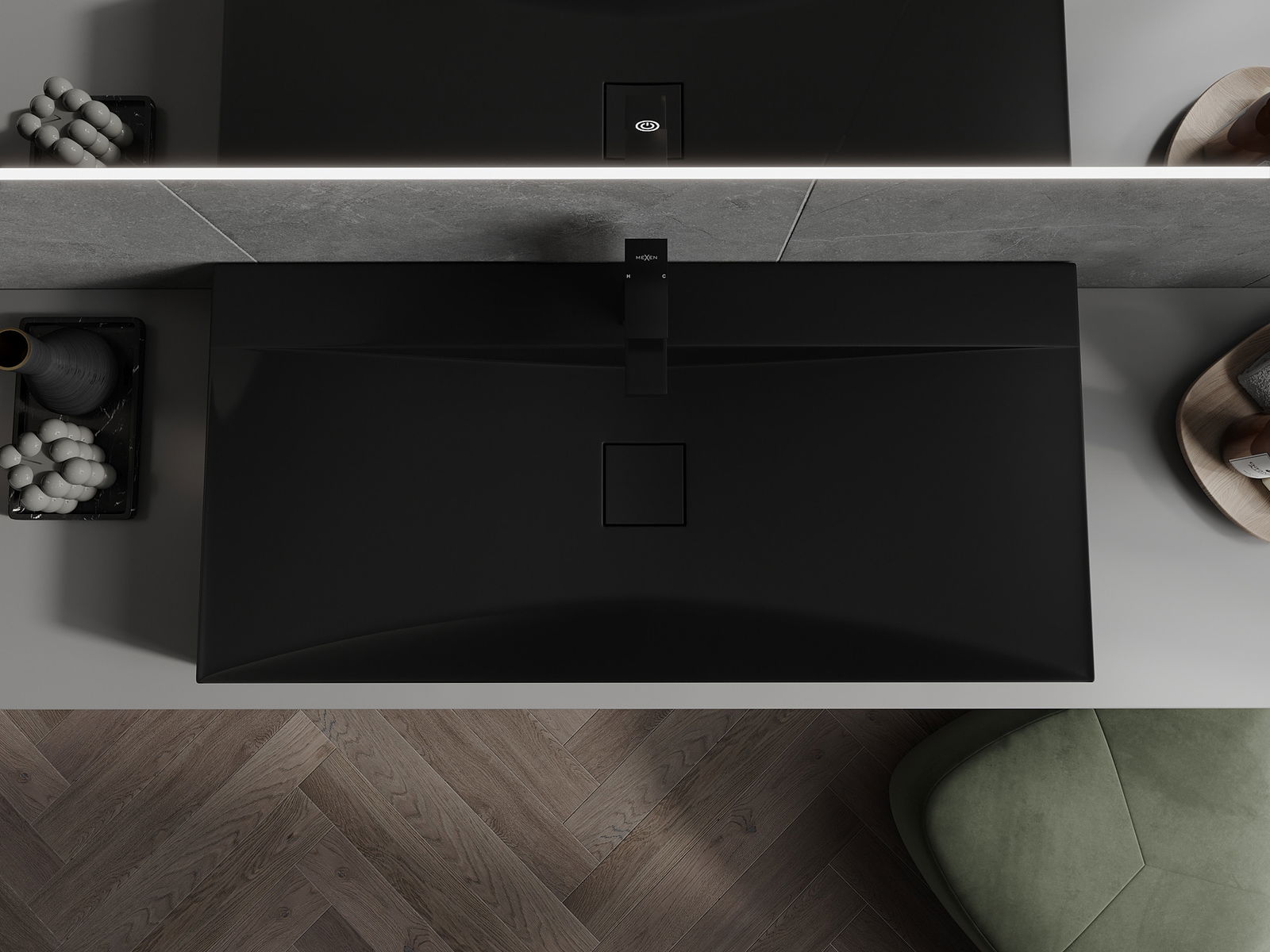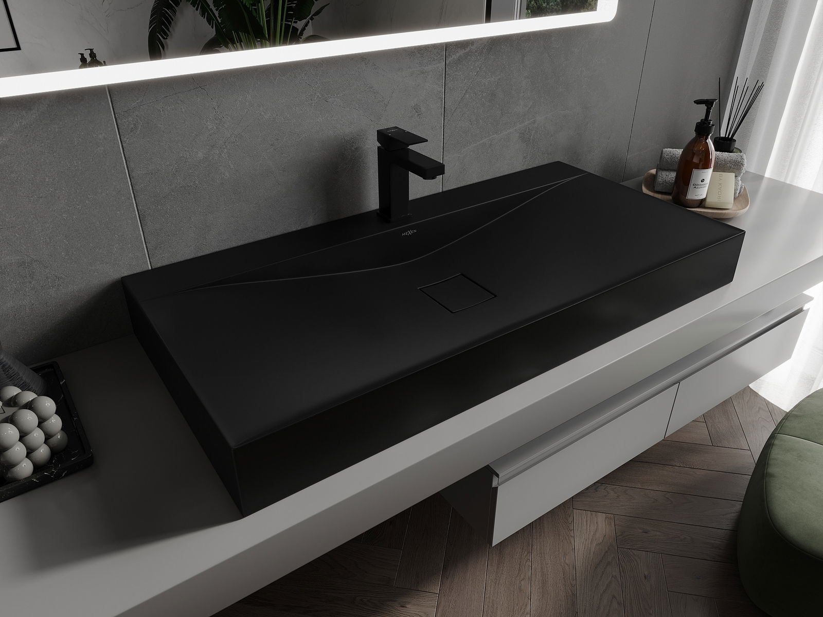 Le lavabo est doté d'un trou pour installer un robinet. Cela permet de gagner de la place dans la salle de bains et de mettre en valeur son esthétique. Cette solution facilite également la propreté des abords du lavabo.