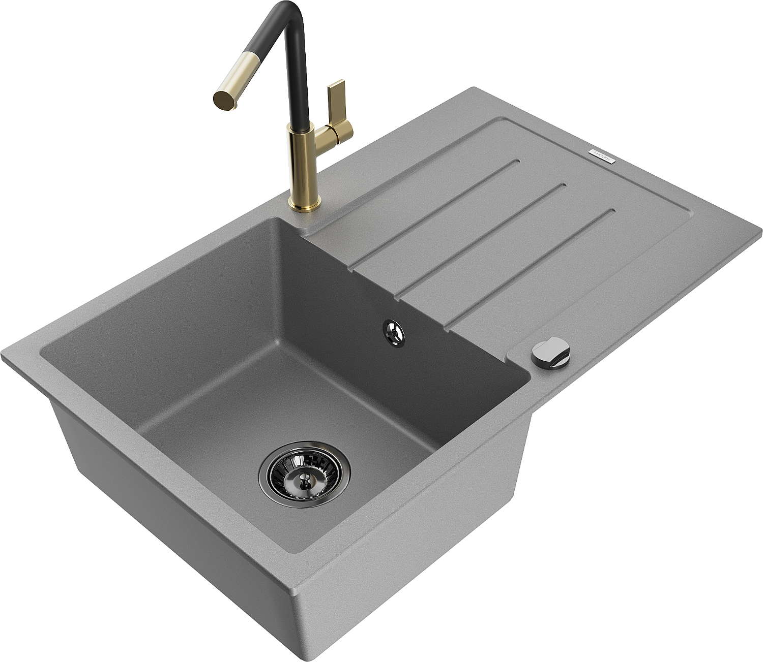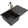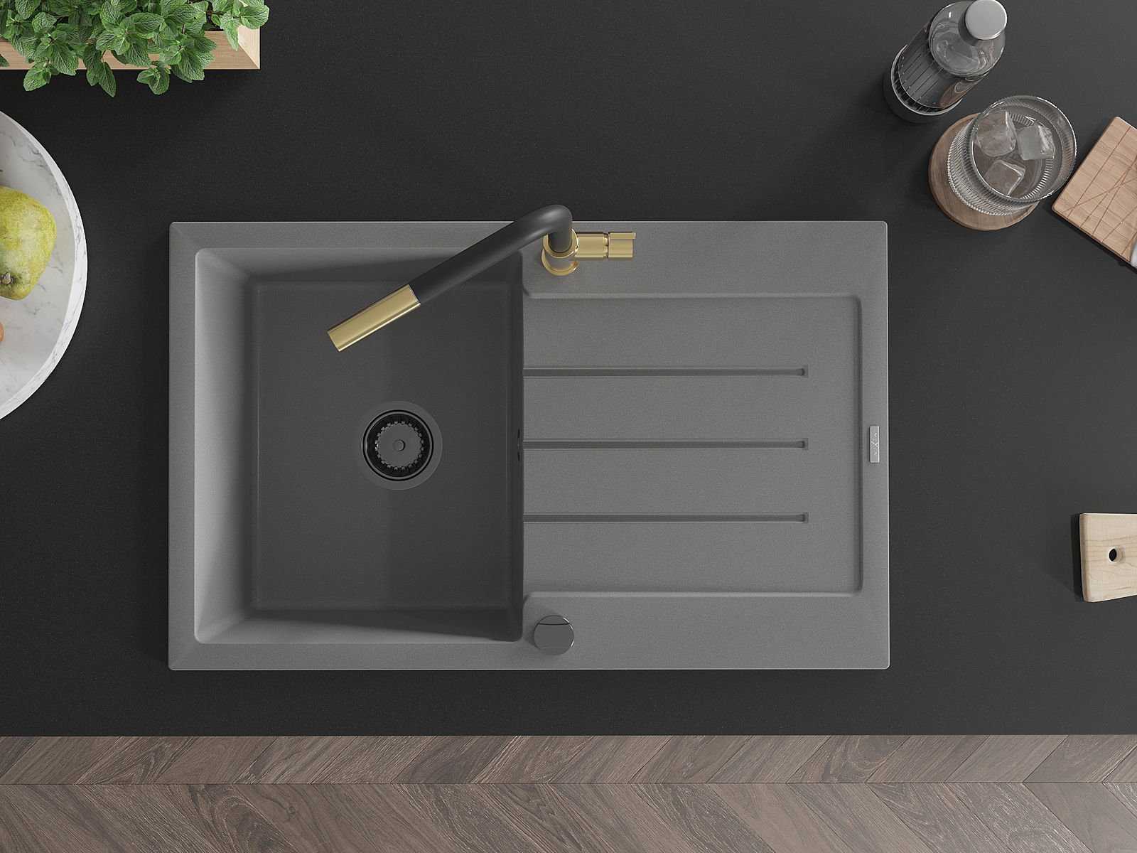 Mexen Bruno évier de cuisine en granit à 1 bac avec égouttoir et robinet Flora, gris - 6513-71-670401-57-B