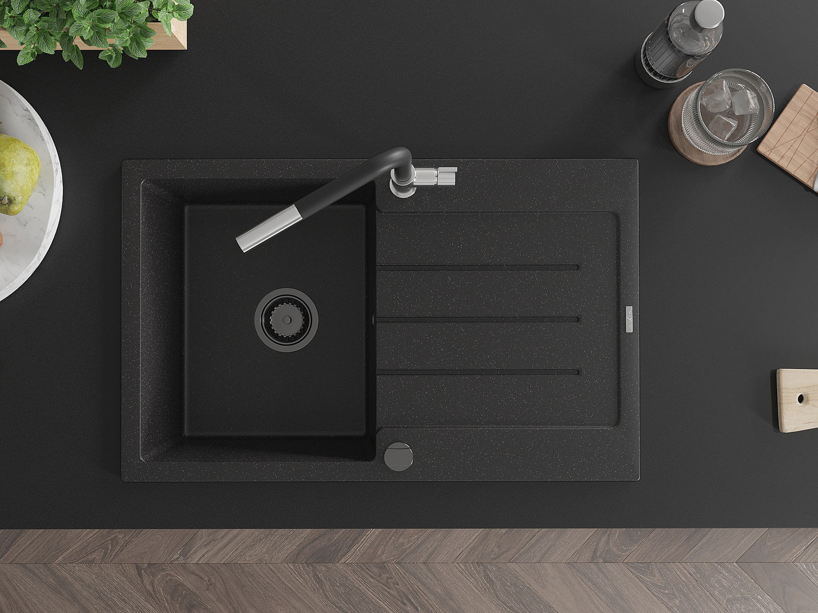 La surface de l'évier est très bien trempée et se distingue par une résistance exceptionnelle aux dommages mécaniques et aux rayures. Ce matériau durable vous permettra de profiter de son bel aspect pendant de nombreuses années.