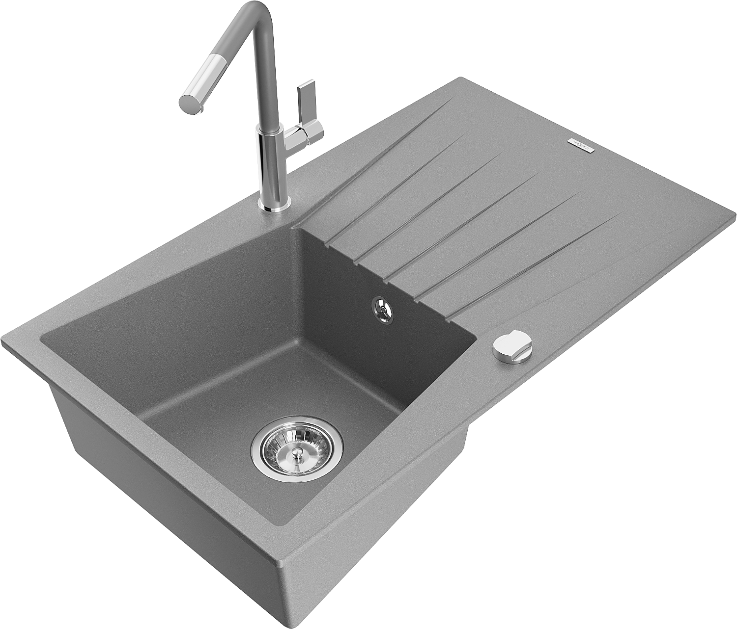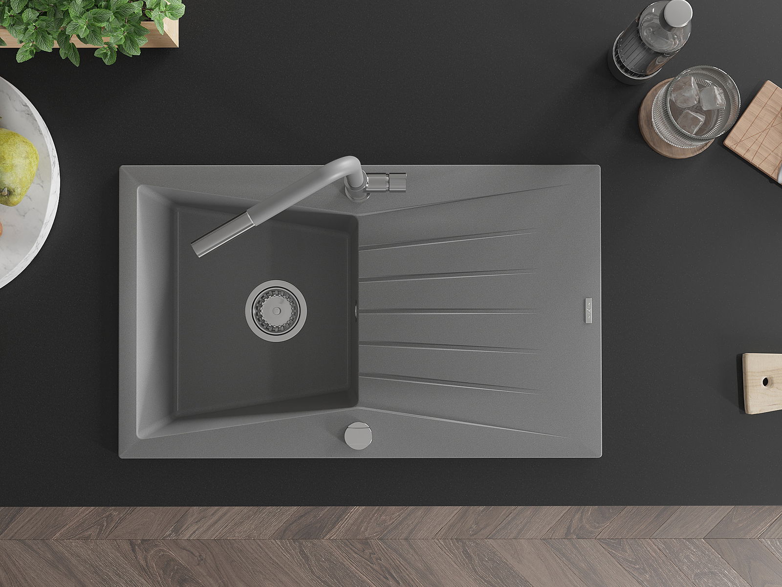 Mexen Cesar évier de cuisine en granit 1 bac avec égouttoir et robinet de cuisine Flora, gris - 6514-71-670401-06