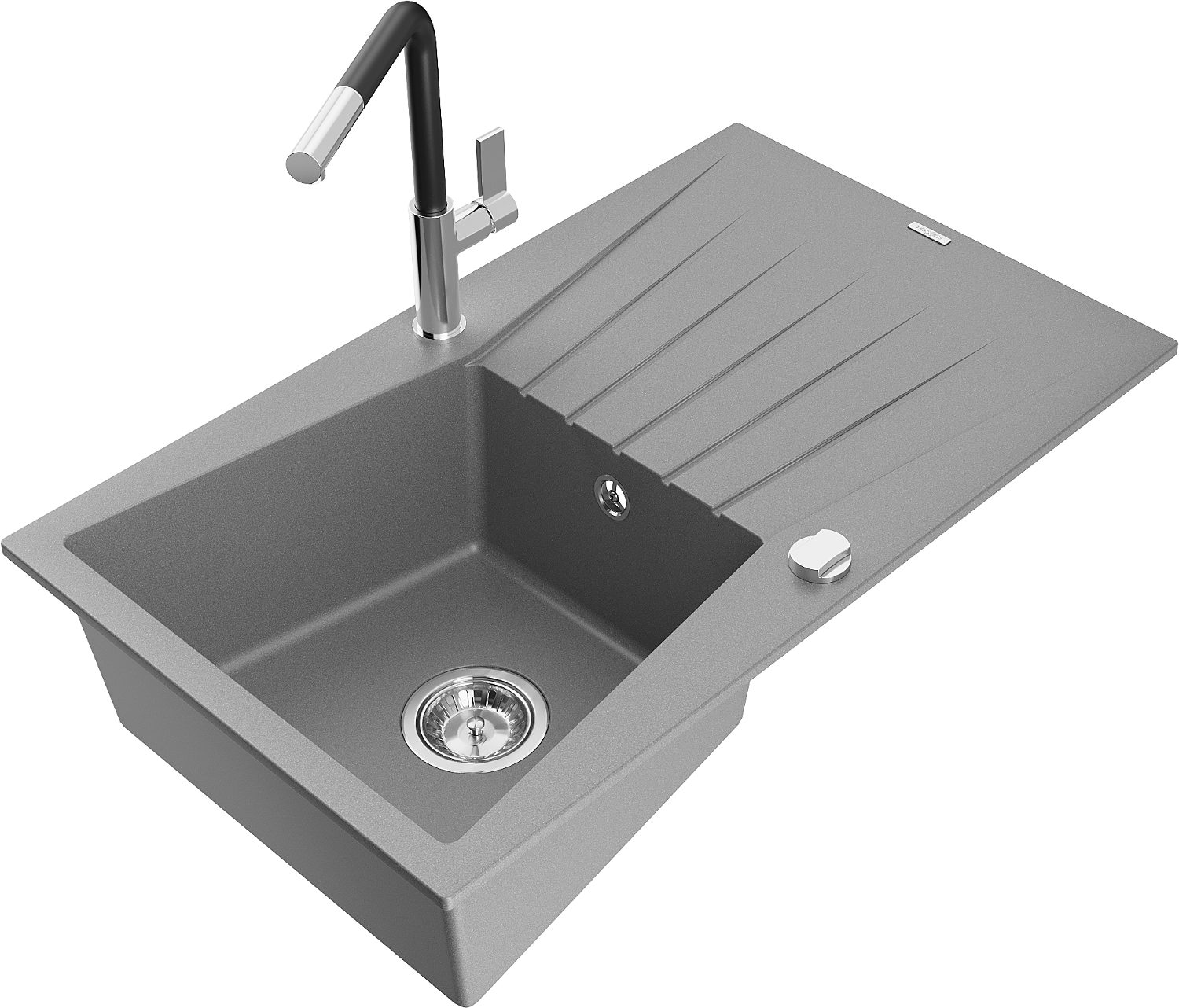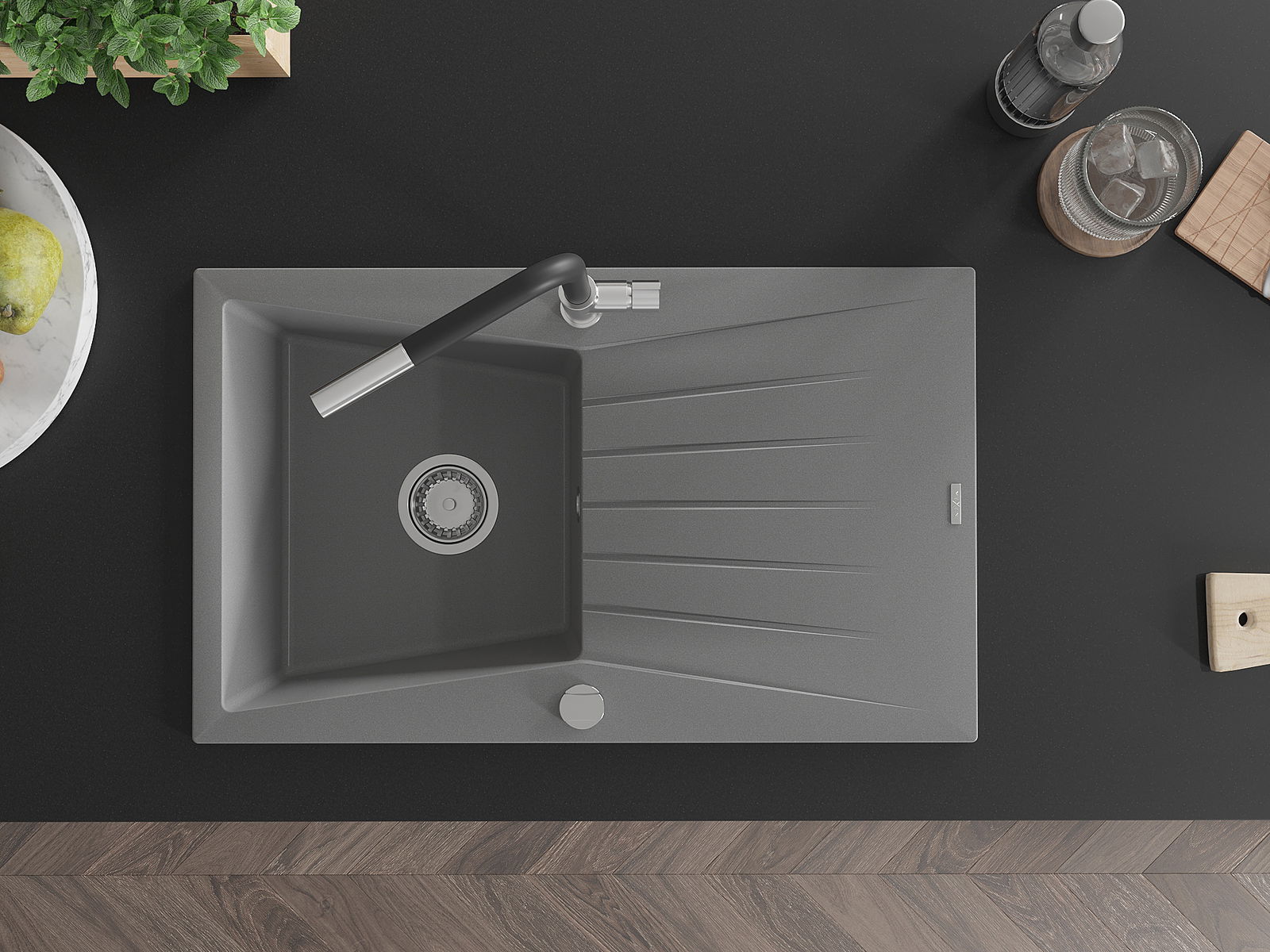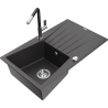 Mexen Cesar évier en granit 1 bac avec égouttoir et robinet de cuisine Flora, gris - 6514-71-670401-07