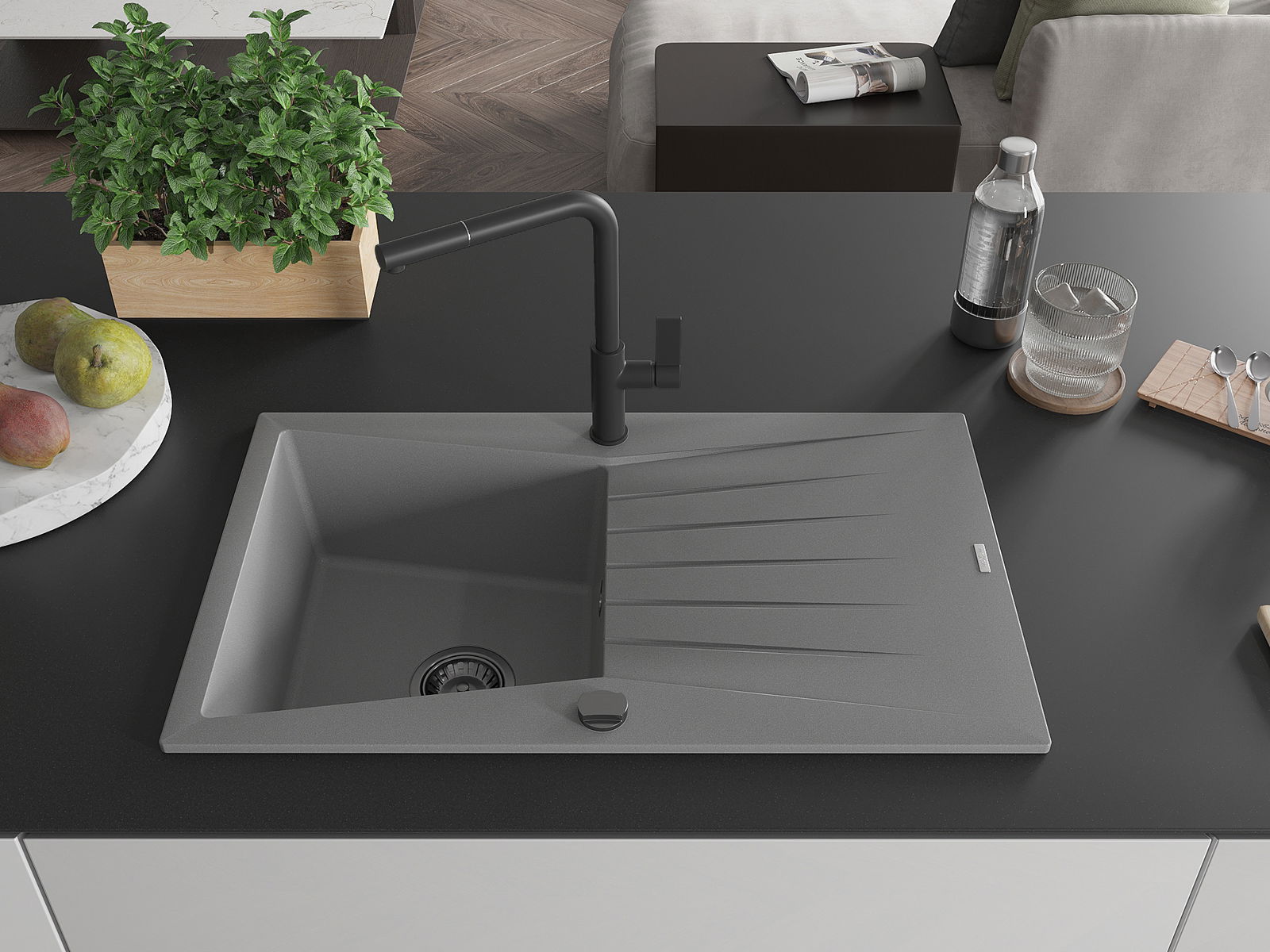 L'évier est fabriqué en granit de haute qualité. Il constitue un complément élégant et surtout pratique pour toute cuisine, quel que soit son style. La qualité et la durabilité du granit garantissent de nombreuses années d'utilisation.
