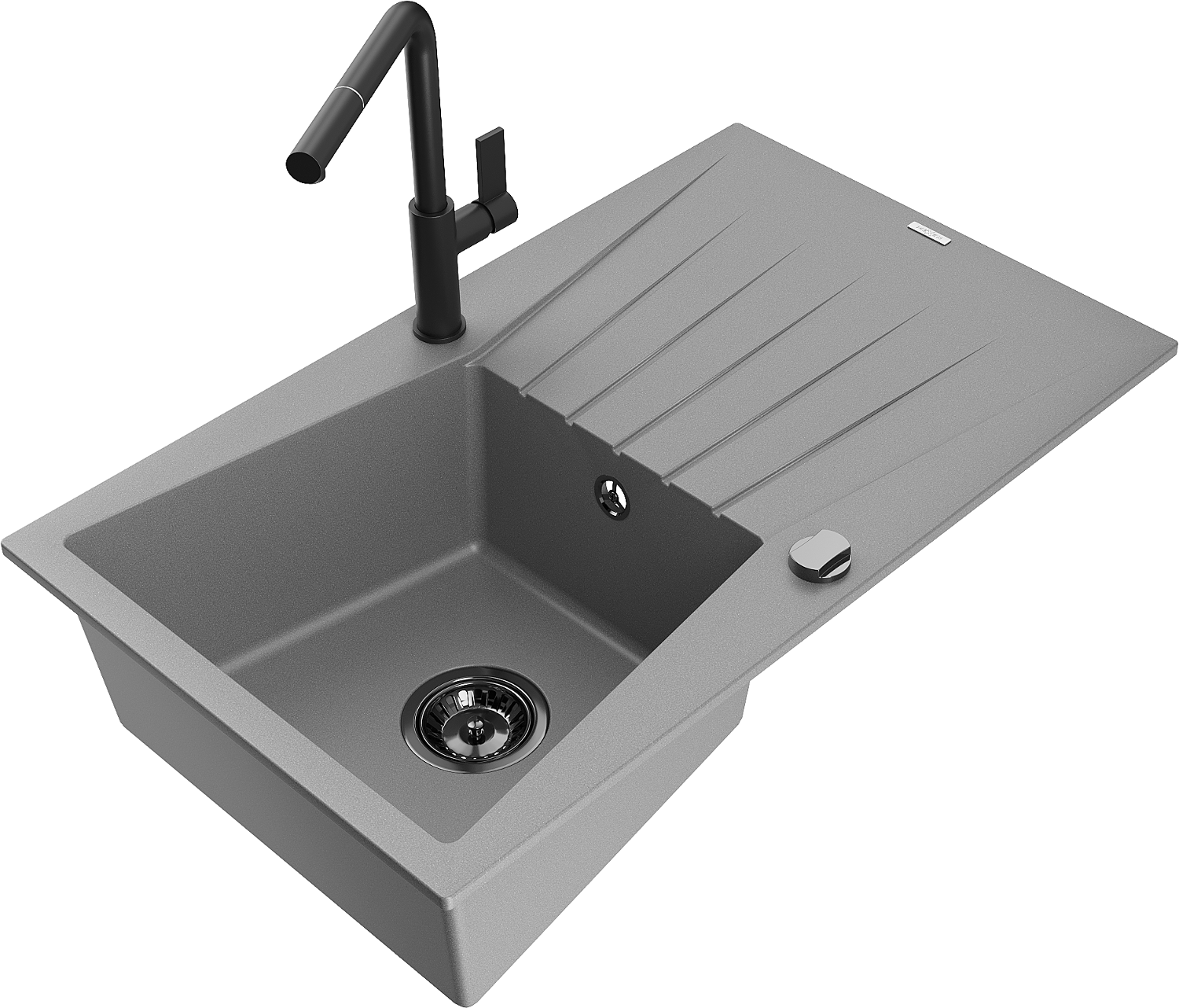 Mexen Cesar évier en granit 1 bac avec égouttoir et robinet de cuisine Flora, gris - 6514-71-670401-70-B