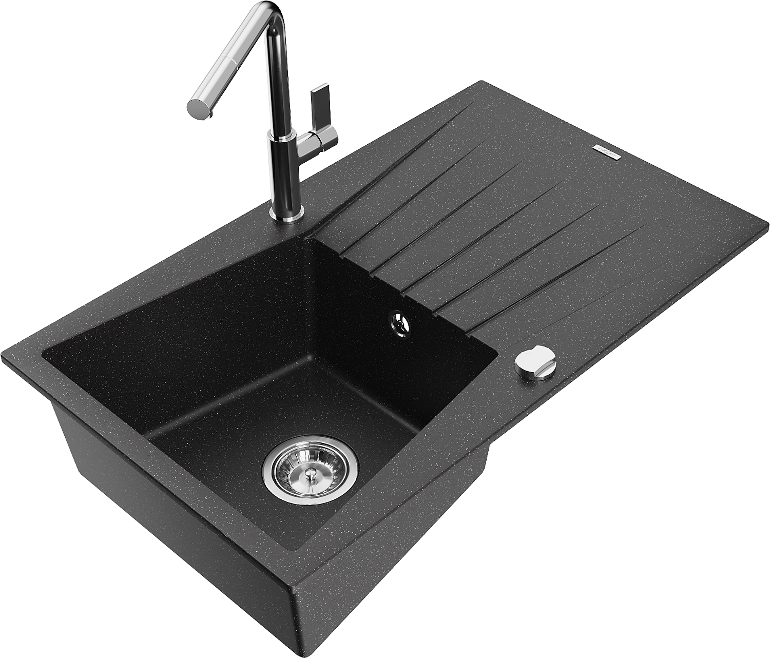 Mexen Cesar évier en granit 1 bac avec égouttoir et robinet de cuisine Flora, noir/argent métallique - 6514-73-670401-00