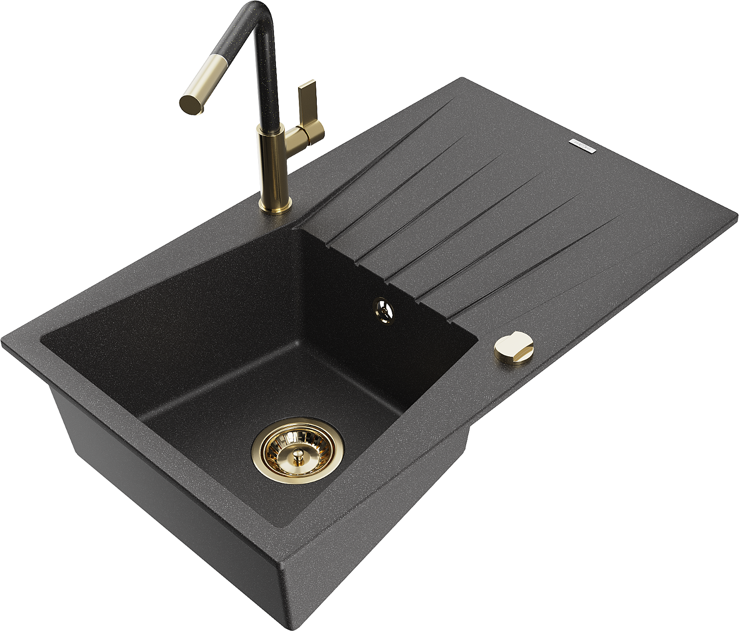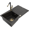 Mexen Cesar évier en granit 1 bac avec égouttoir et robinet de cuisine Flora, noir moucheté - 6514-76-670401-75-G