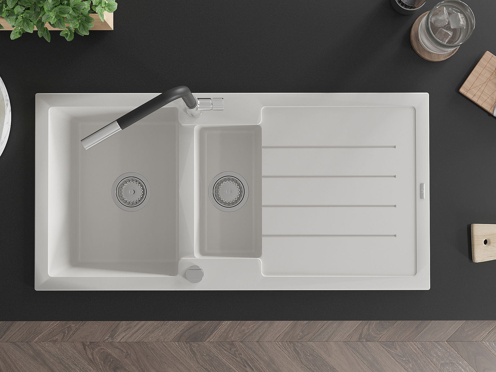 La surface de l'évier est très bien trempée et se distingue par une résistance exceptionnelle aux dommages mécaniques et aux rayures. Ce matériau durable vous permettra de profiter de son bel aspect pendant de nombreuses années.