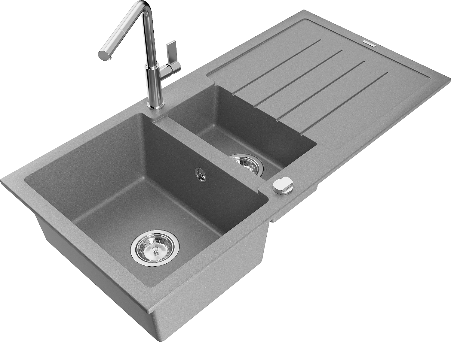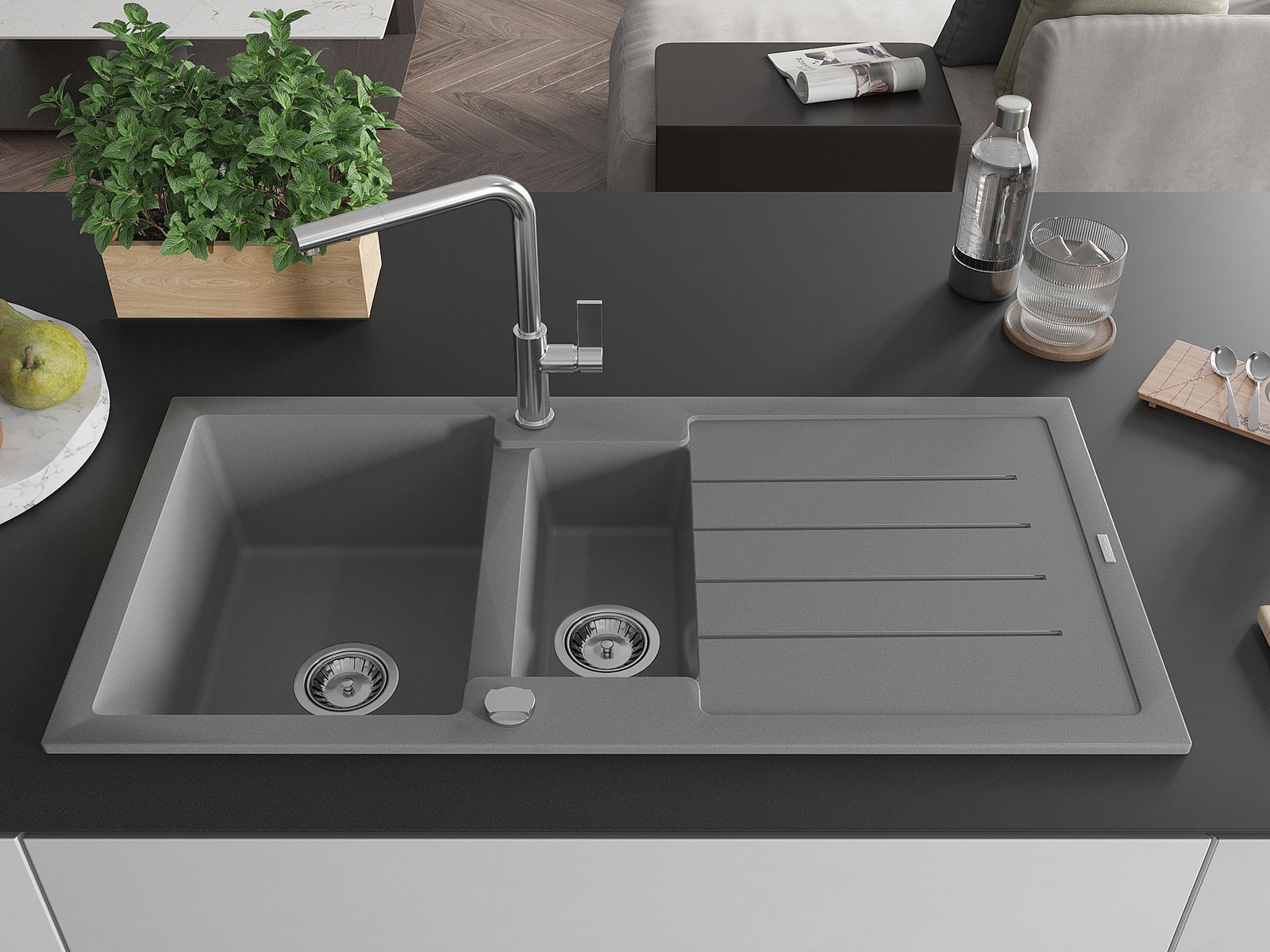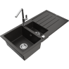 Mexen Andres évier en granit 1,5 bac avec Égouttoir et robinet cuisine Flora, gris - 6515-71-670401-00