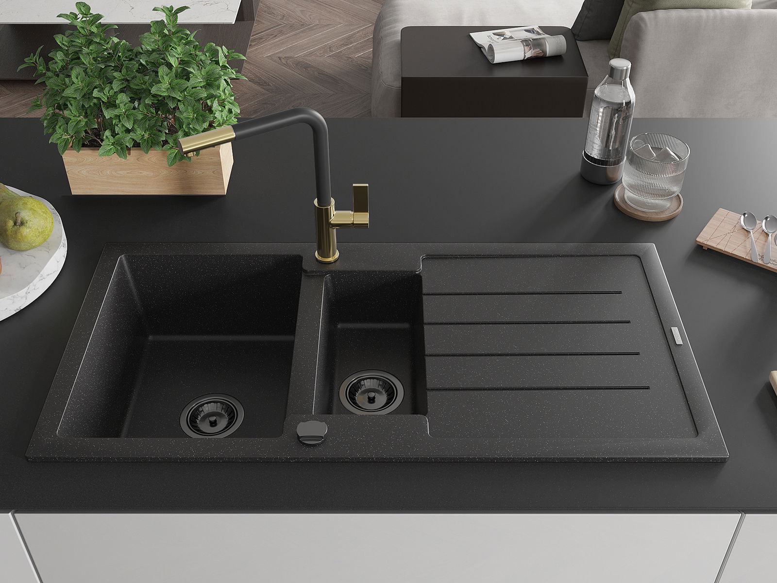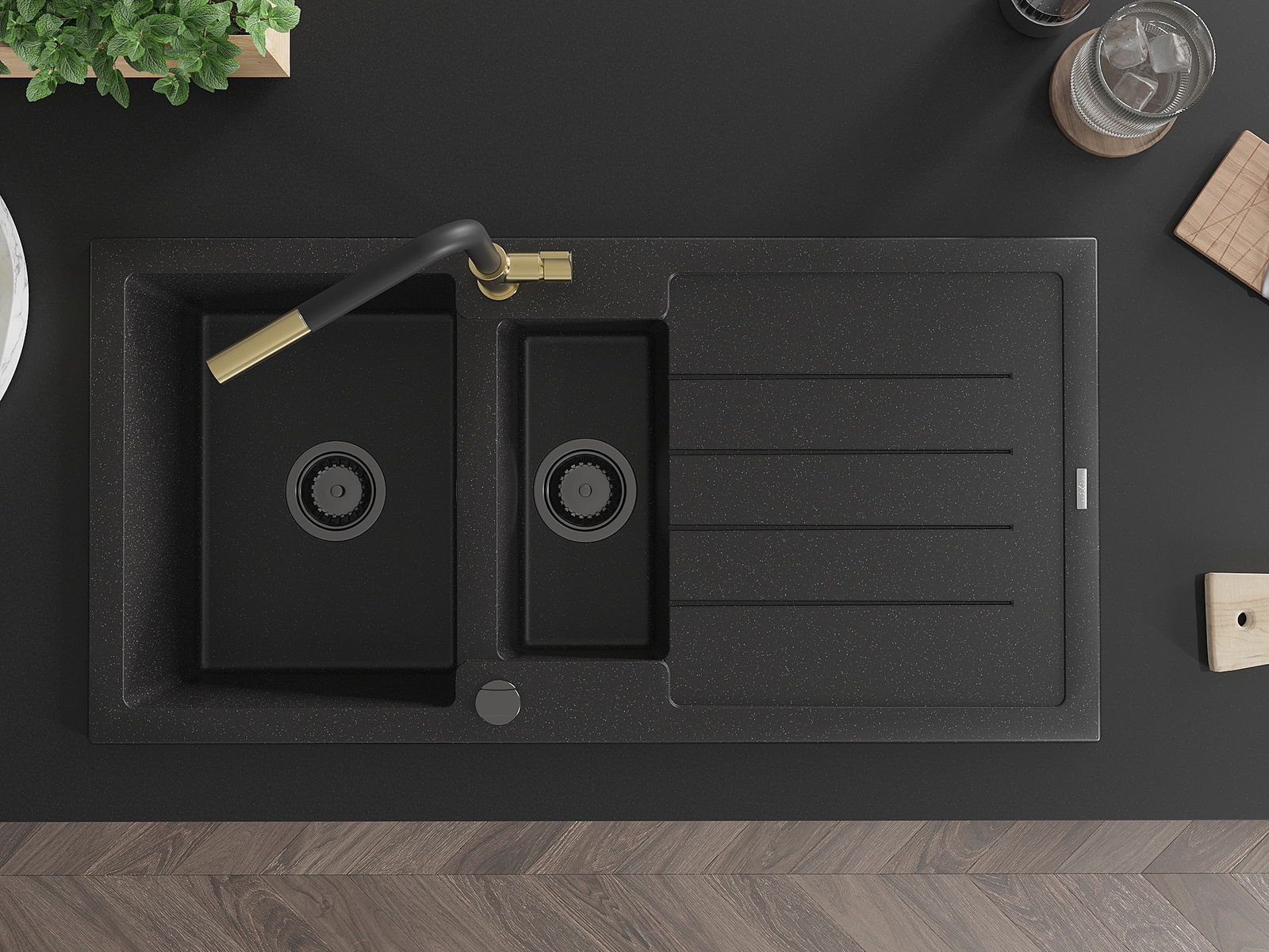 La surface de l'évier est très bien trempée et se distingue par une résistance exceptionnelle aux dommages mécaniques et aux rayures. Ce matériau durable vous permettra de profiter de son bel aspect pendant de nombreuses années.