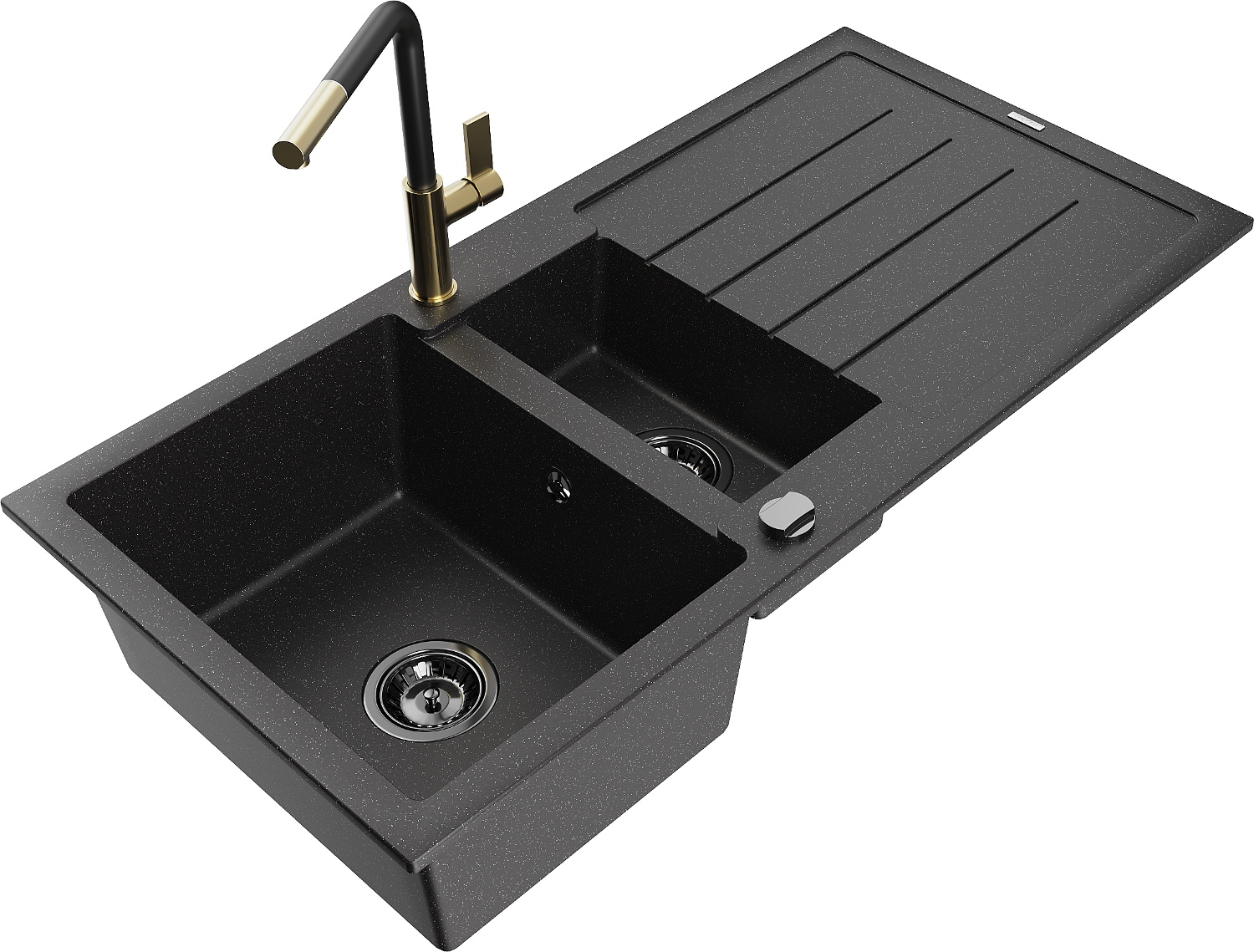 Mexen Andres évier en granit 1,5 bac avec égouttoir et mitigeur cuisine Flora, noir/argent - 6515-73-670401-57-B