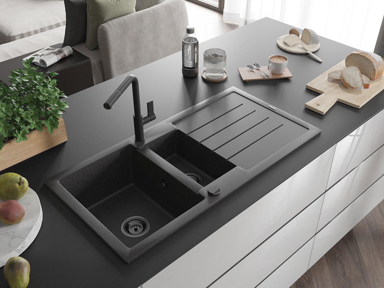 L'évier est fabriqué en granit de haute qualité. Il constitue un complément élégant et surtout pratique pour toute cuisine, quel que soit son style. La qualité et la durabilité du granit garantissent de nombreuses années d'utilisation.
