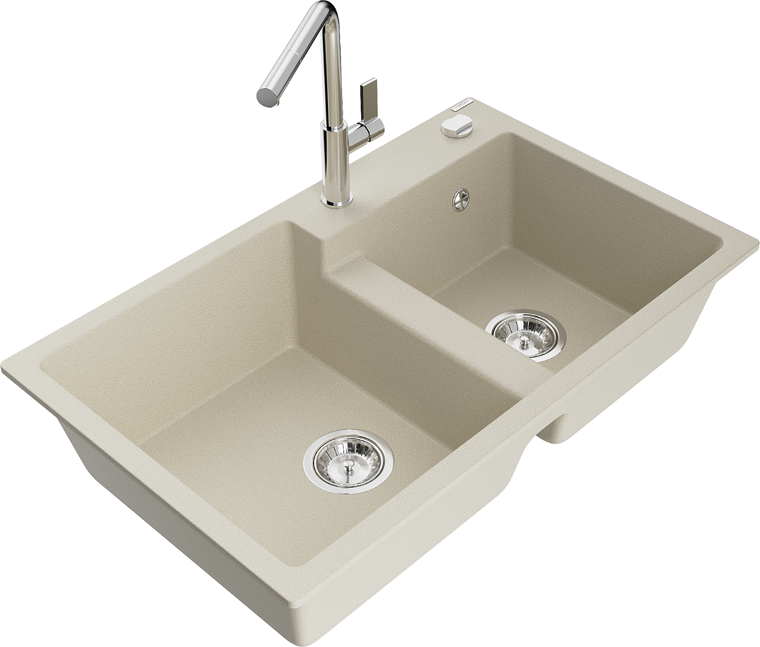 Mexen Tomas évier en granit à deux bacs avec robinet de cuisine Flora, beige - 6516-69-670401-00