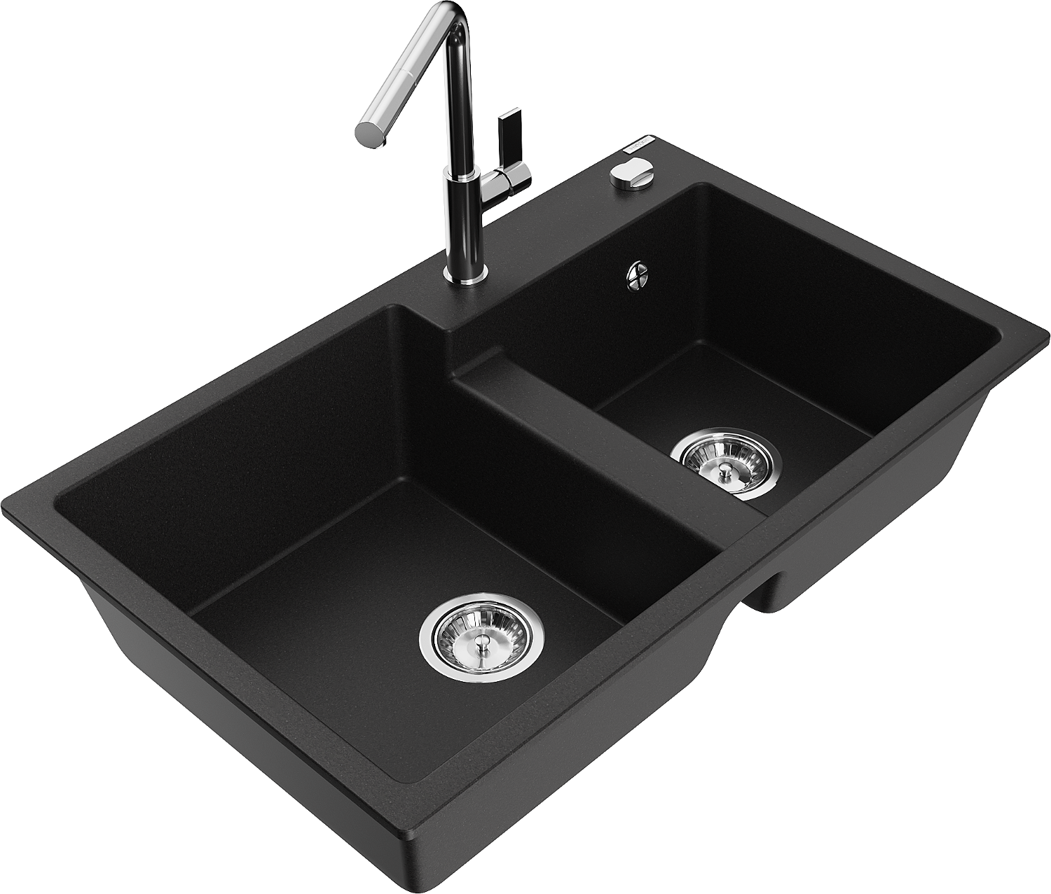 Mexen Tomas évier de cuisine en granit 2 cuves avec robinet Flora, noir - 6516-77-670401-00