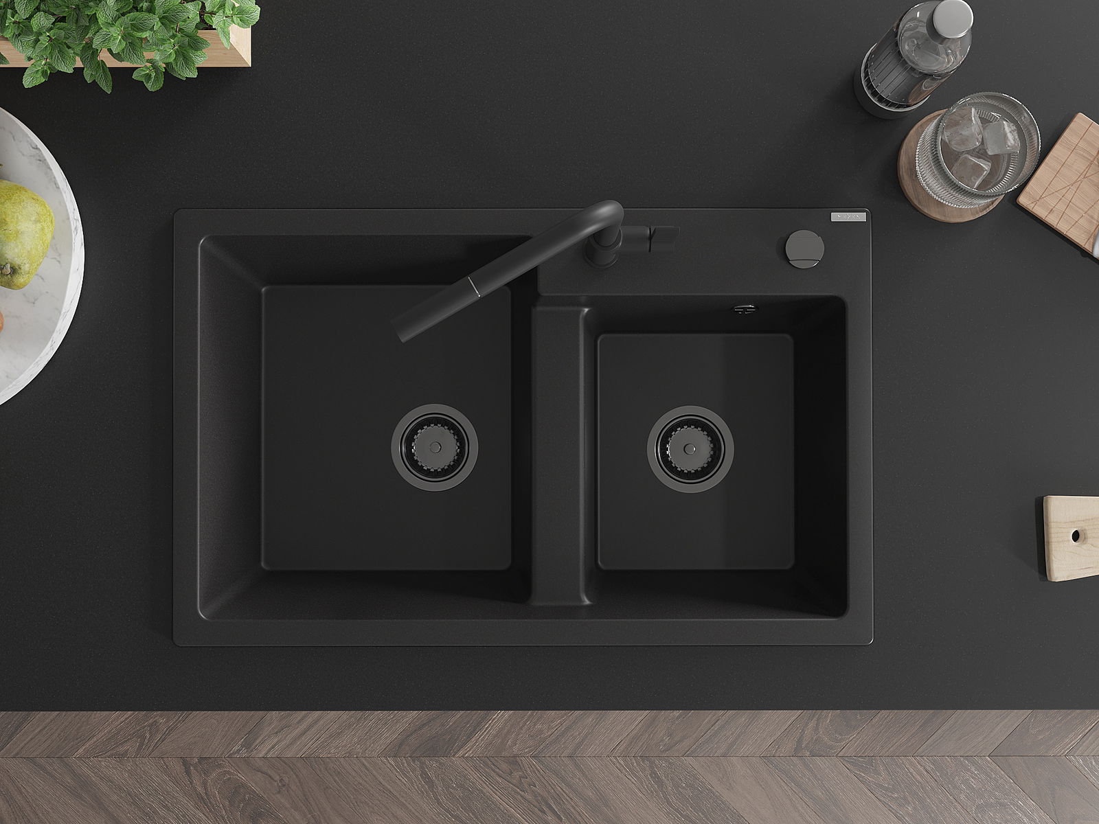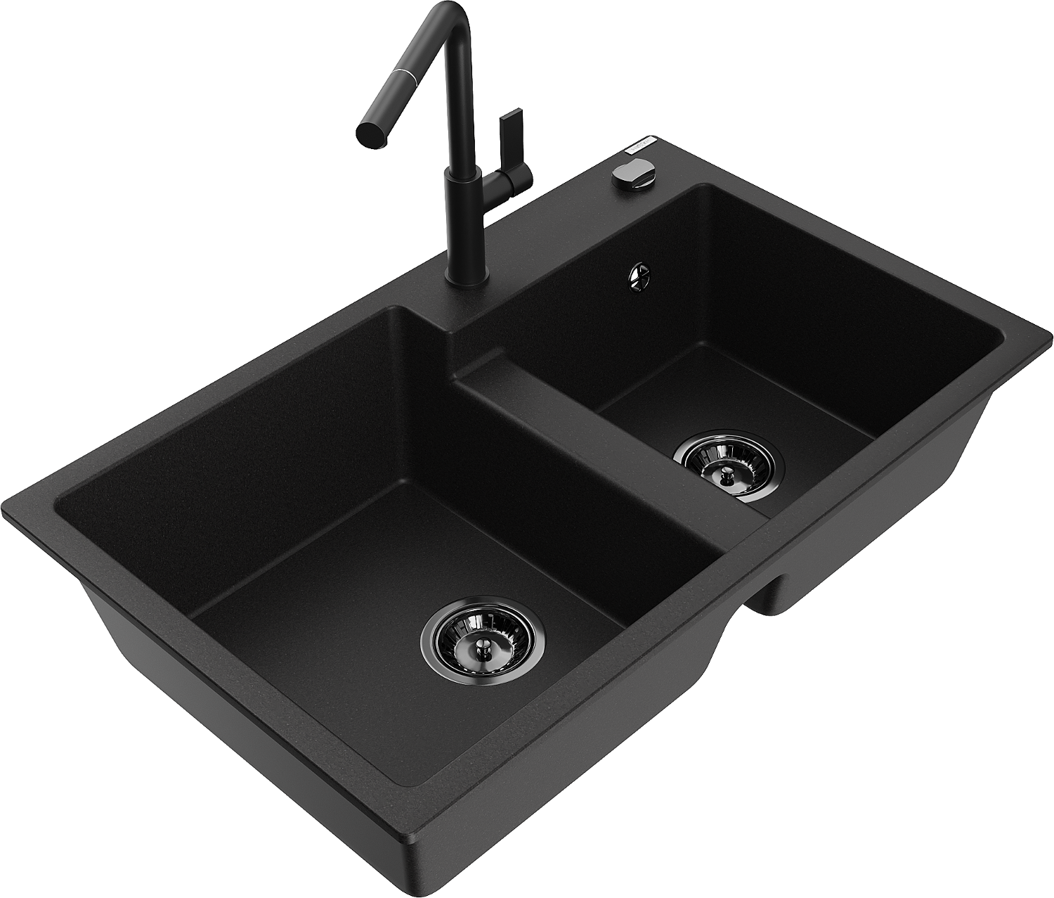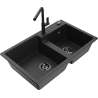 Mexen Tomas évier composite 2 bacs avec robinet de cuisine Flora, noir - 6516-77-670401-70-B