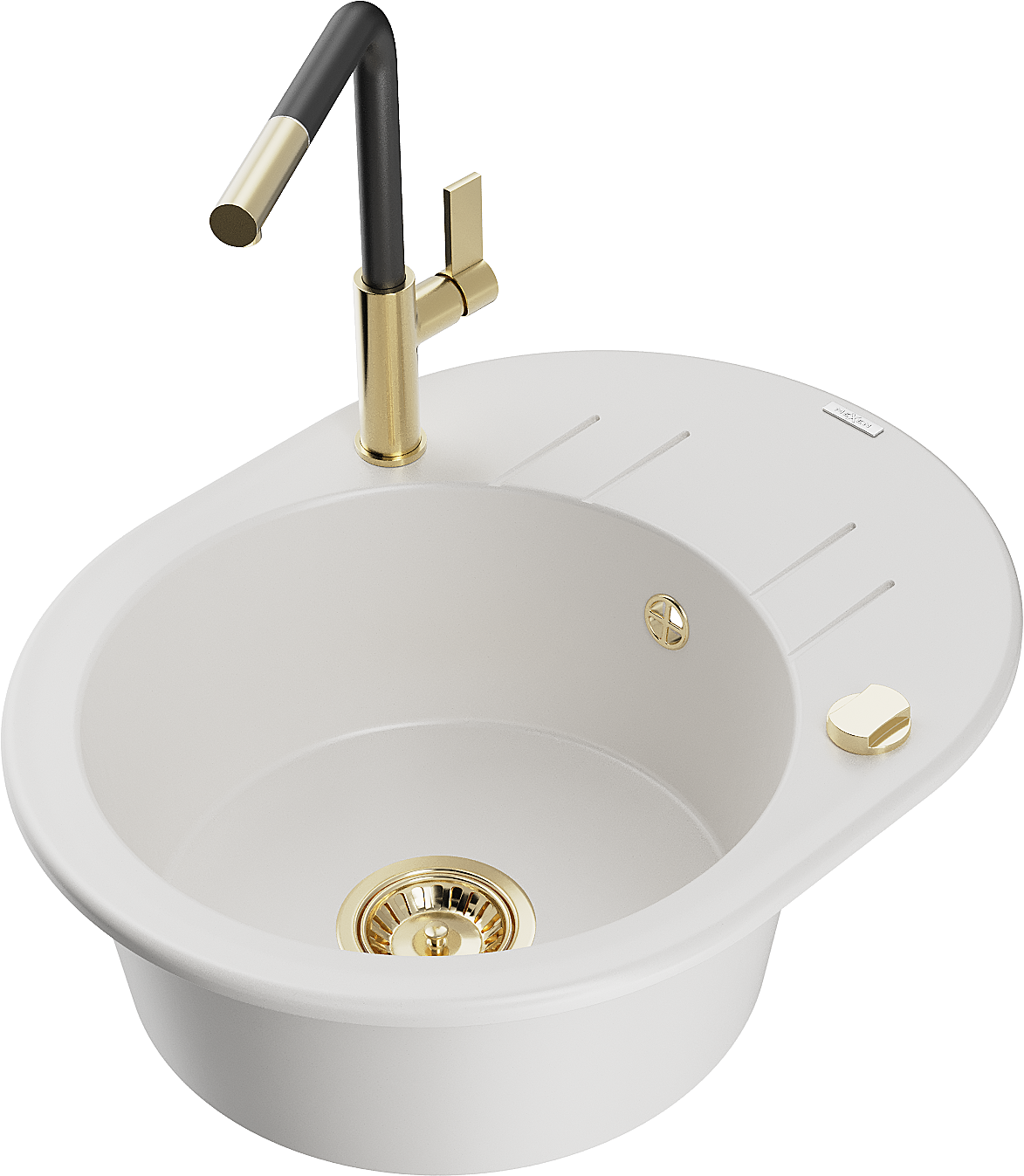 Mexen Kevin évier de cuisine en granit 1 bac avec égouttoir et robinet de cuisine Flora, blanc - 6517-20-670401-57-G