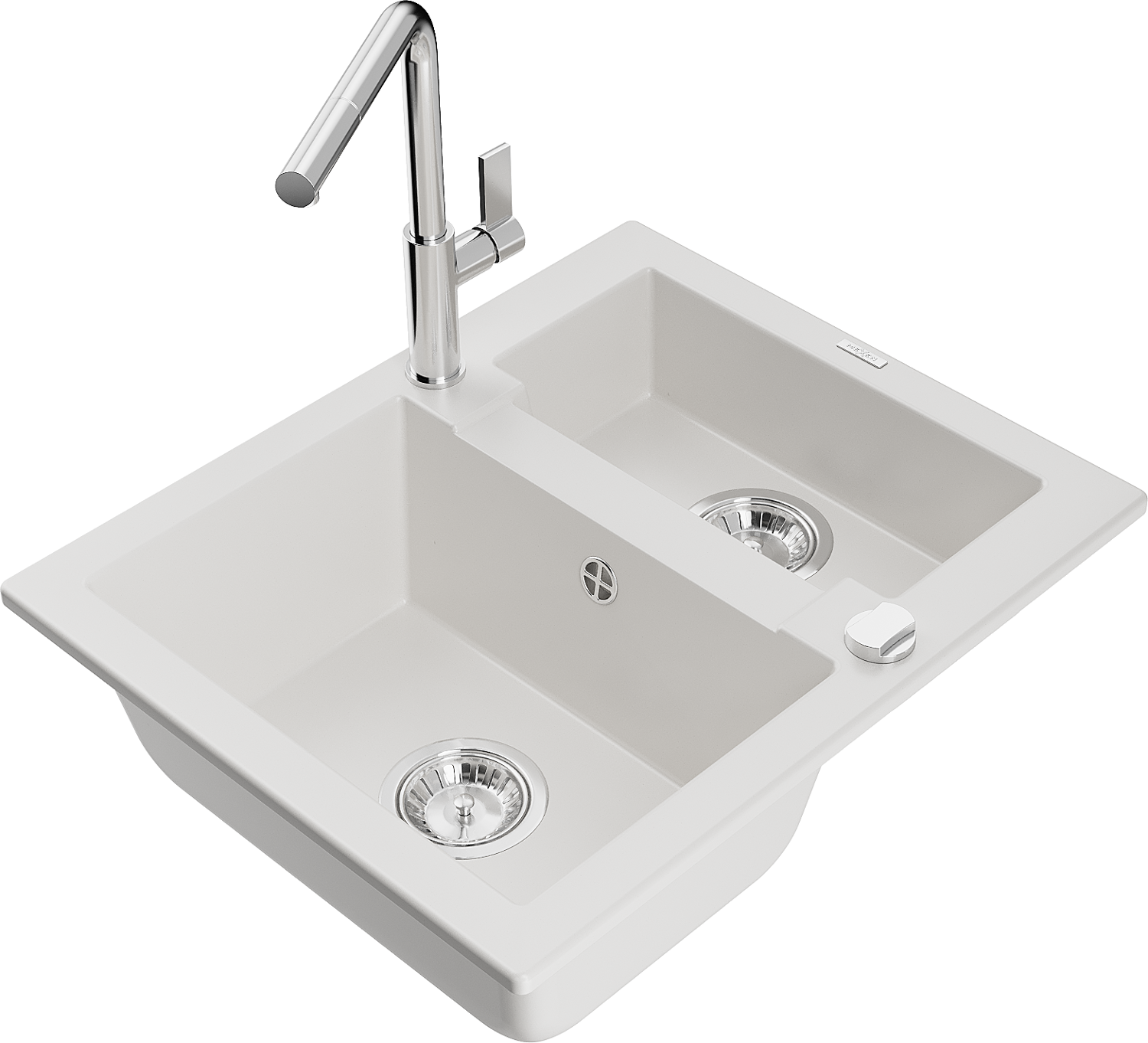 Mexen Carlos évier en granit 1,5 bac avec robinet de cuisine Flora, blanc - 6518-20-670401-00