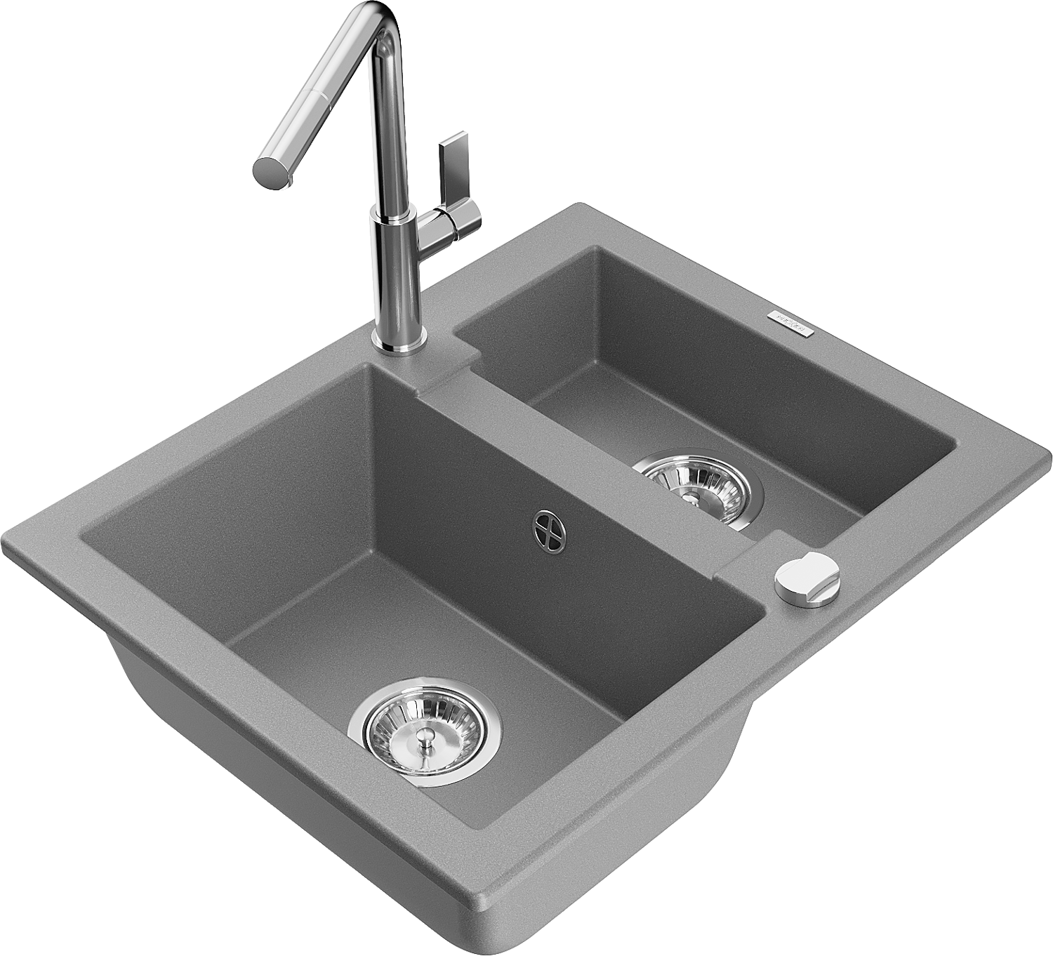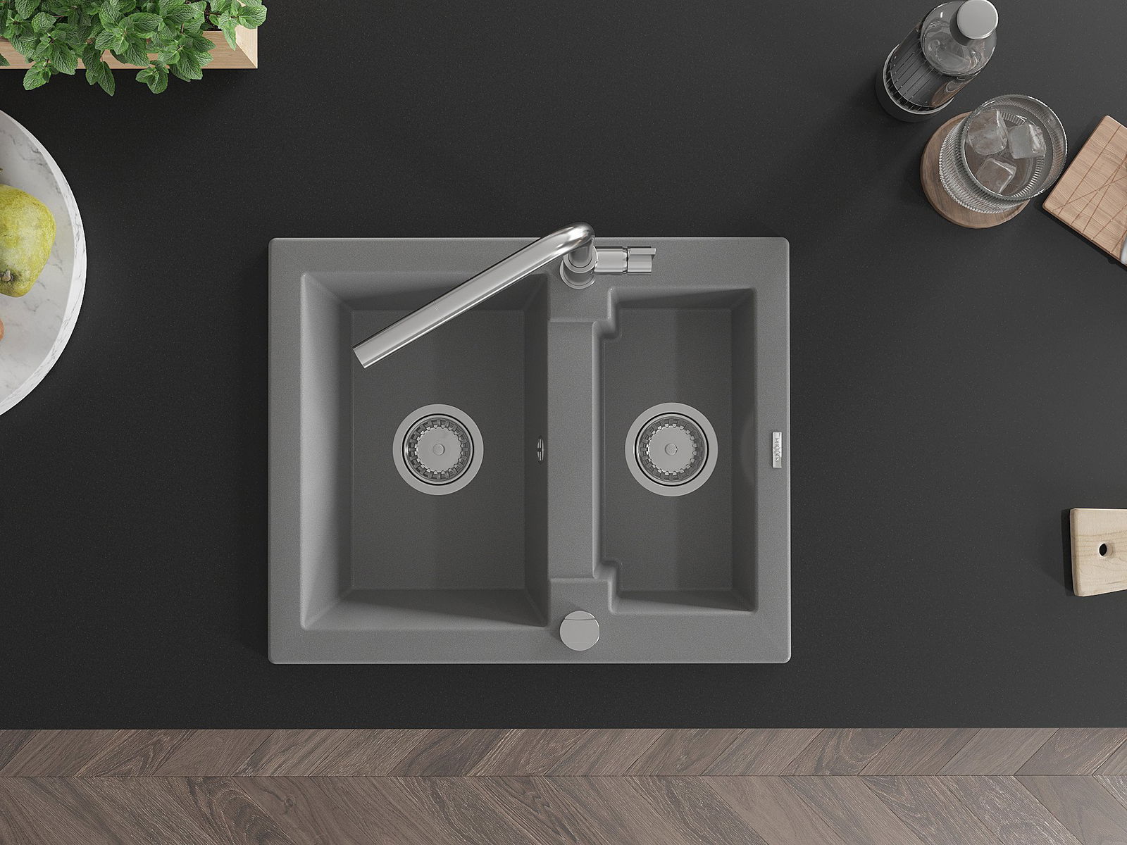Mexen Carlos évier en granit 1,5 bac avec mitigeur Flora, gris - 6518-71-670401-00