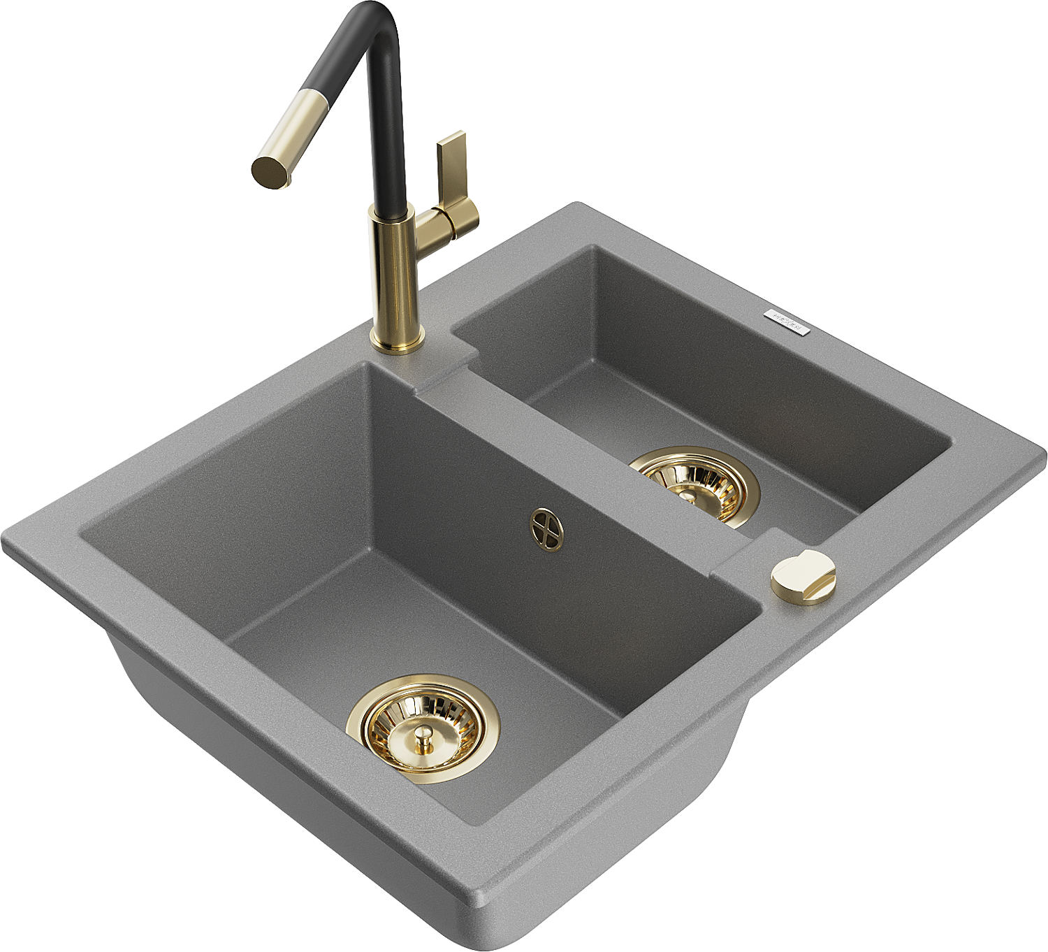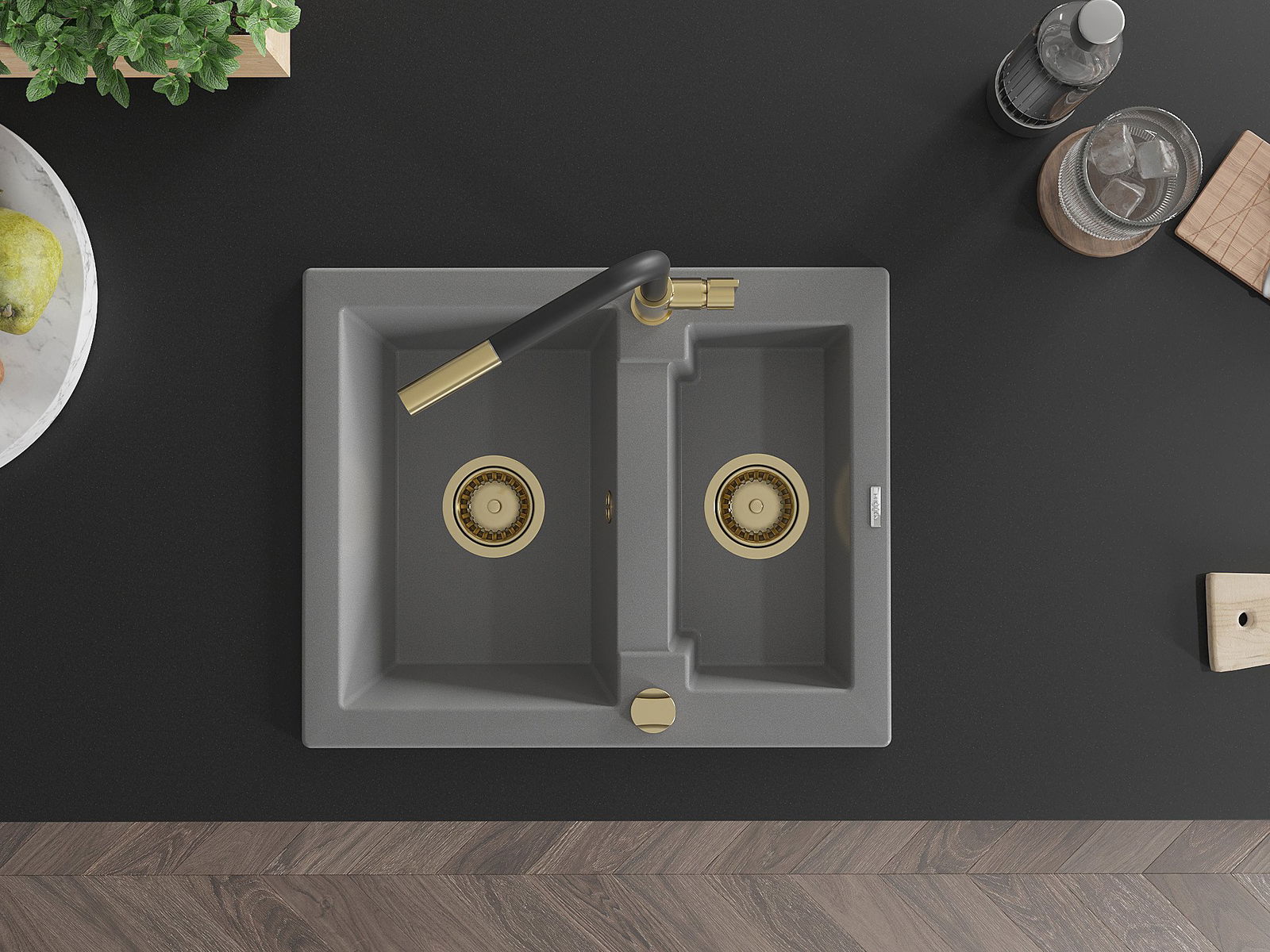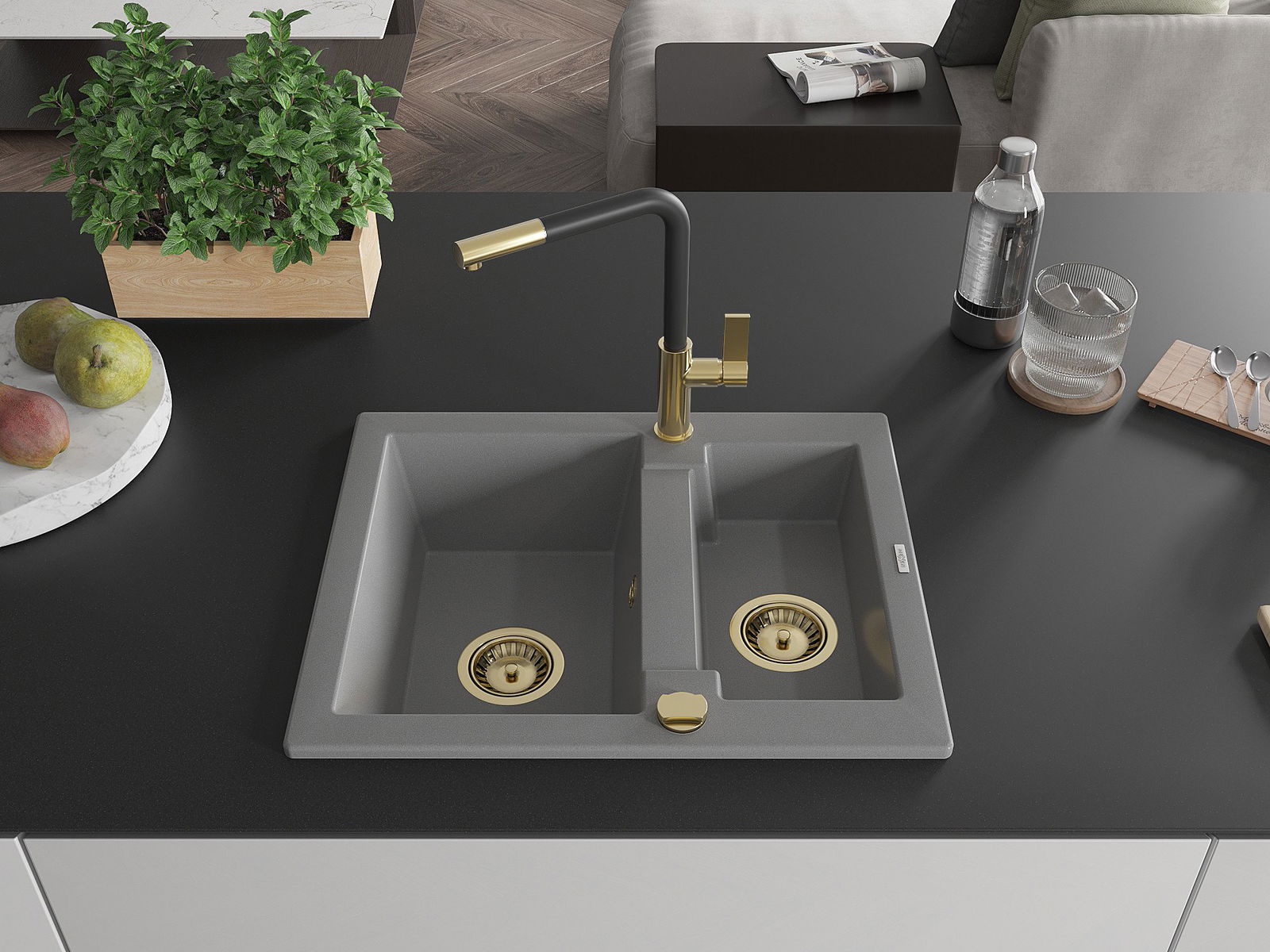 Mexen Carlos évier en granit 1,5 bac avec robinet de cuisine Flora, gris - 6518-71-670401-57-G