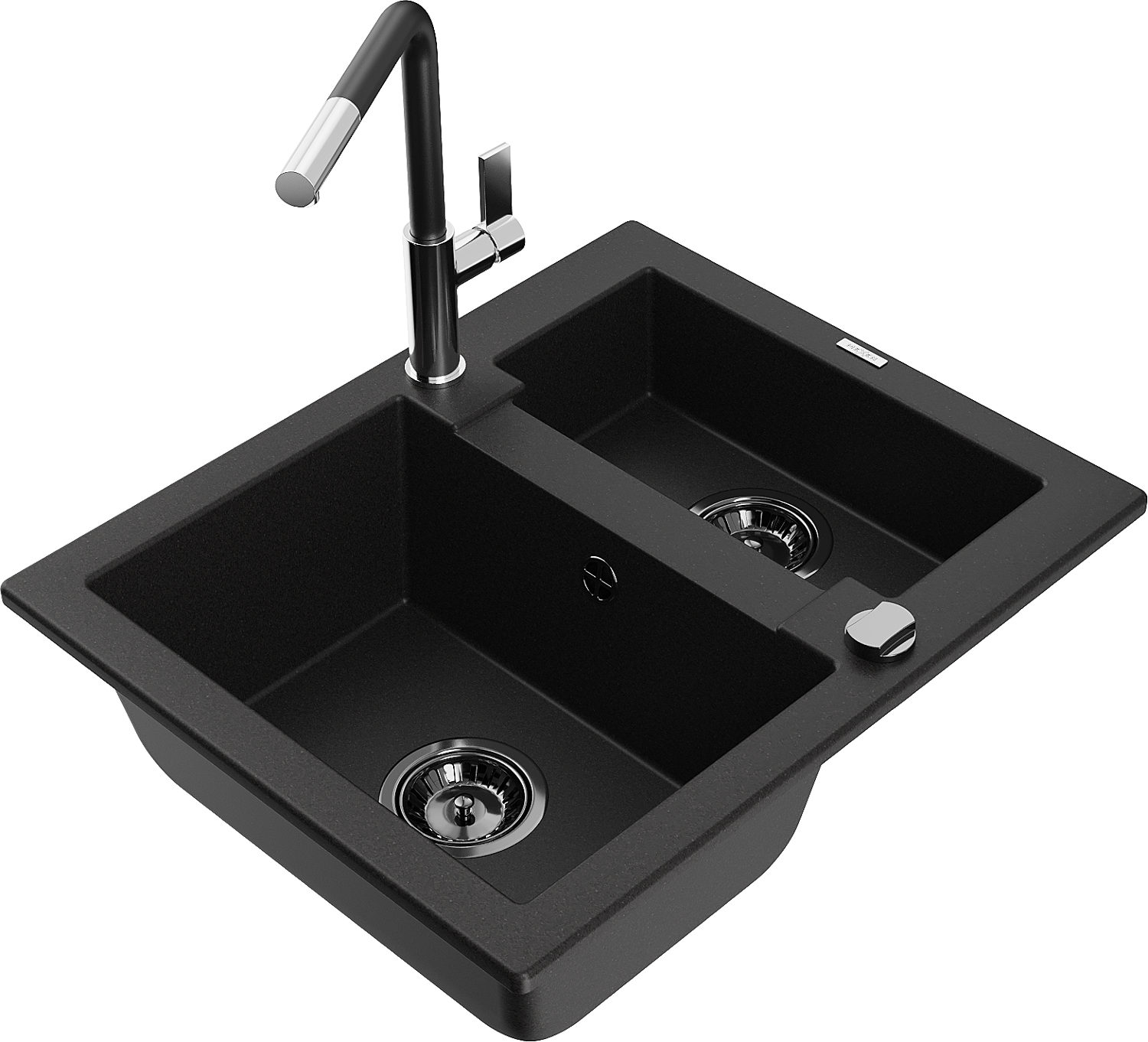 Mexen Carlos évier en granit 1,5 bac avec mitigeur de cuisine Flora, noir - 6518-77-670401-07-B