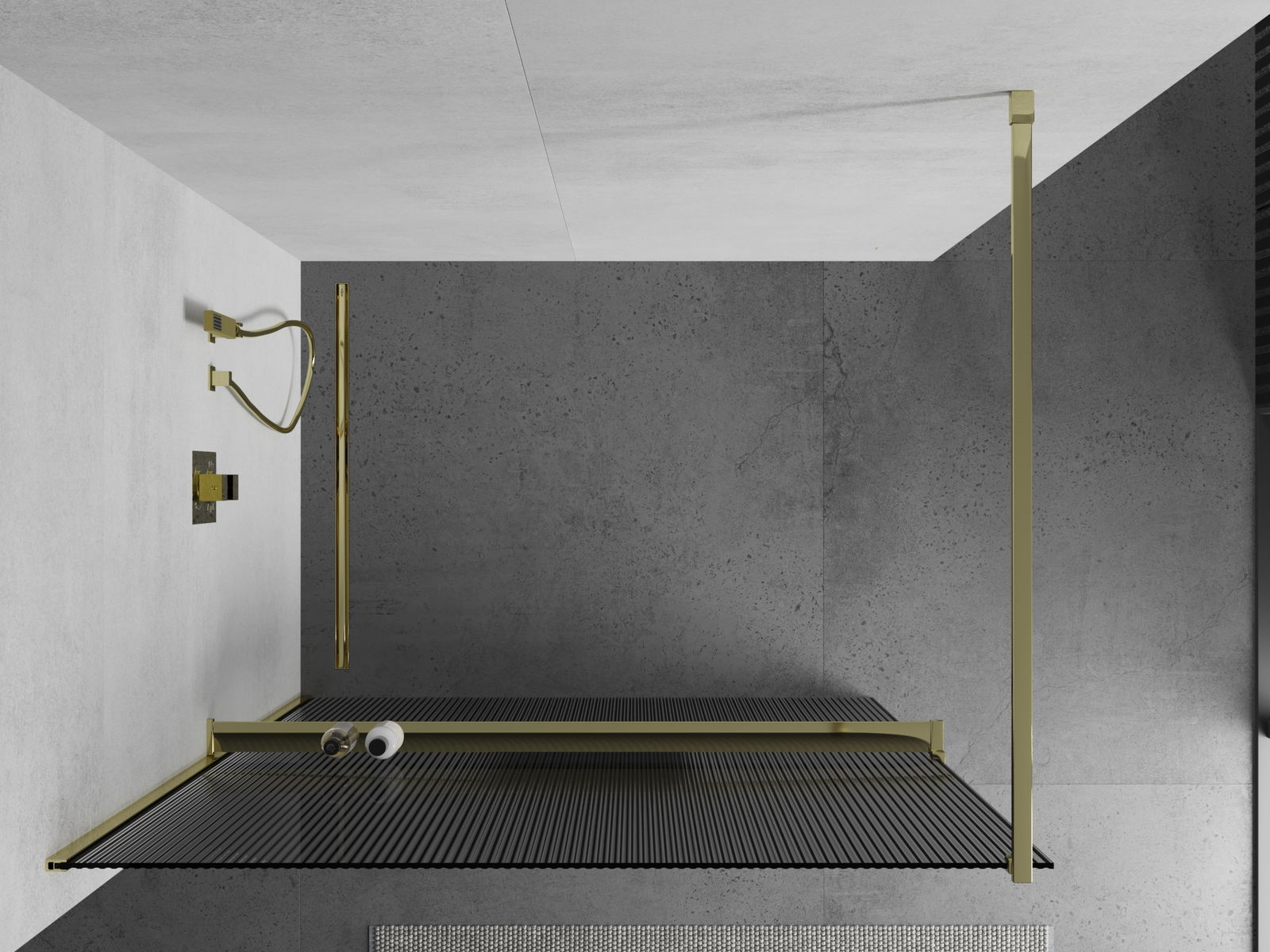 Mexen Kioto+ paroi de douche avec étagère Walk-in 110 x 200 cm, rayures, or - 800-110-121-50-09