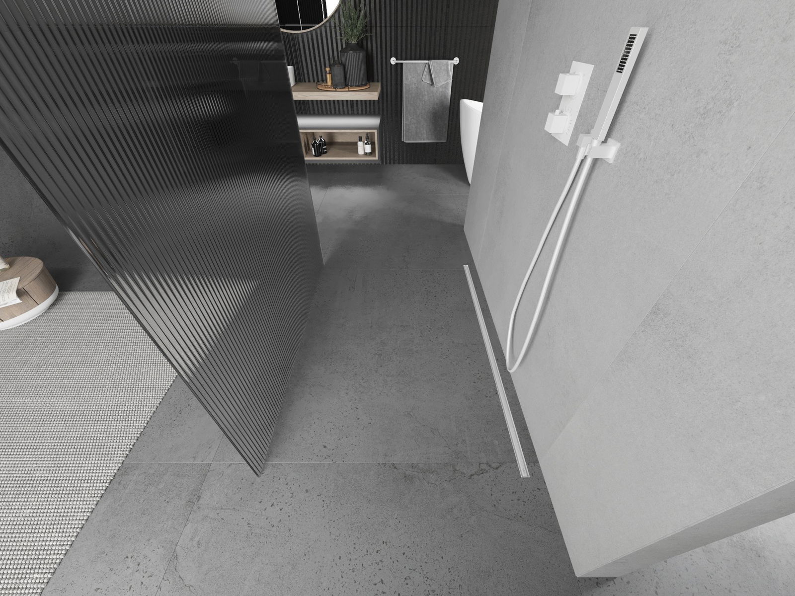 Paroi de douche autoportante Mexen Kioto 100 x 200 cm, striures 8 mm, blanche - 800-100-002-20-09