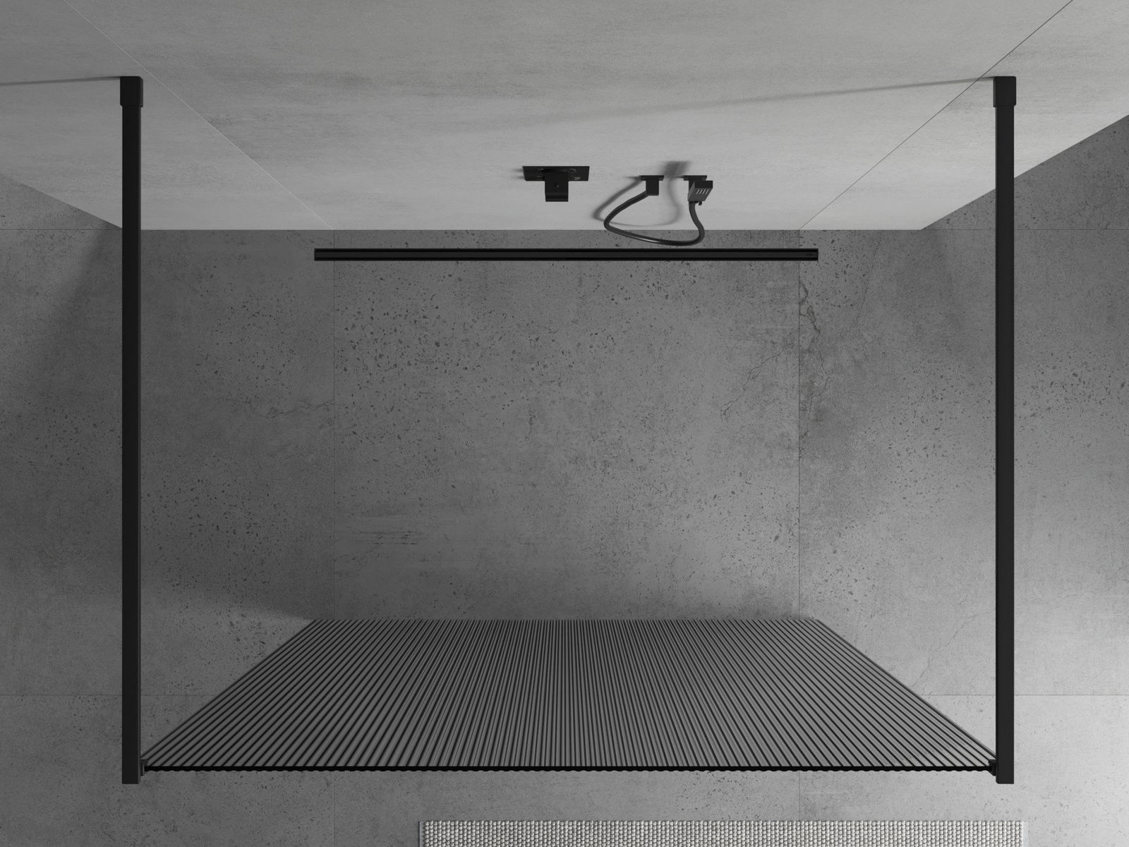 Mexen Kioto paroi de douche autoportante 130 x 200 cm, stries 8 mm, noir - 800-130-002-70-09