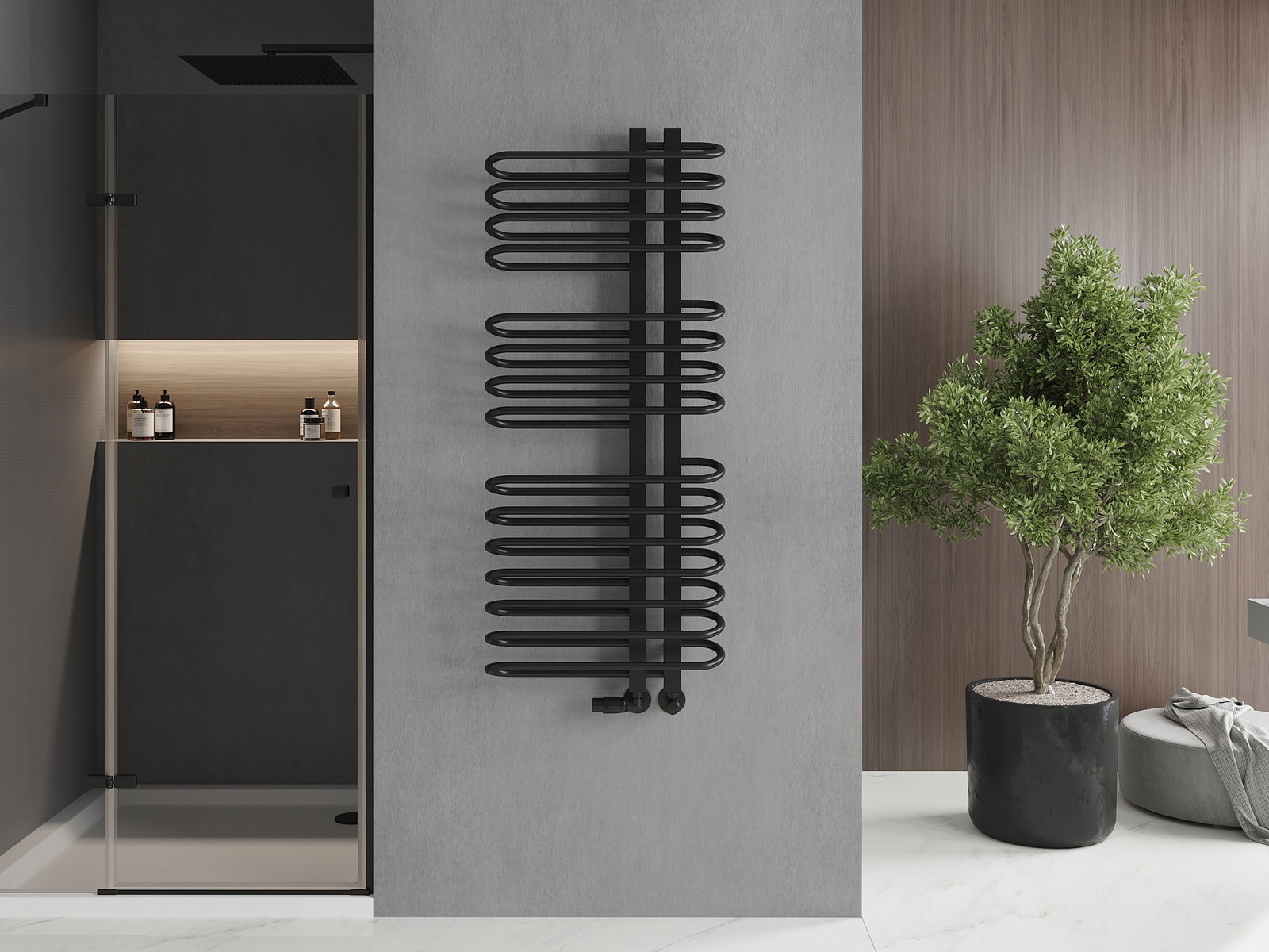 Inclus : supports, kit de montage, bouchons d'étanchéité et purgeur