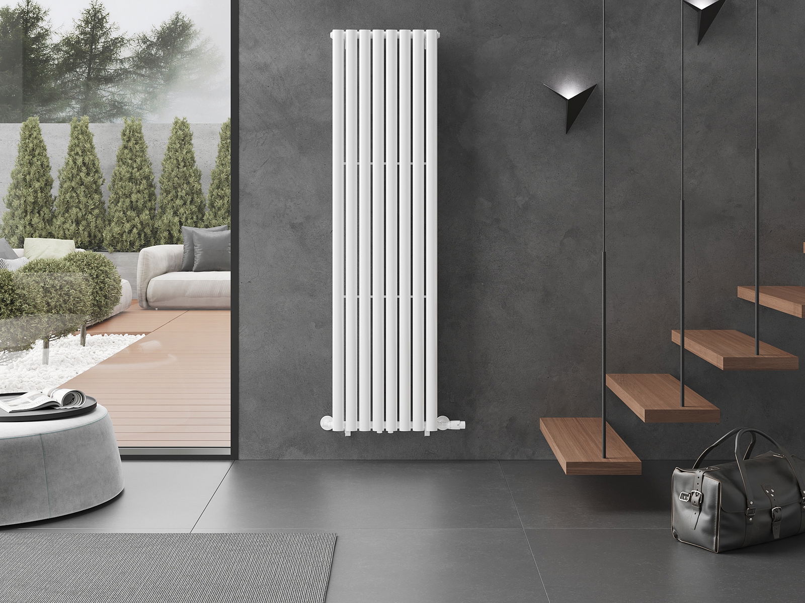 Inclus : supports, kit de montage, bouchons d'obturation et purgeur