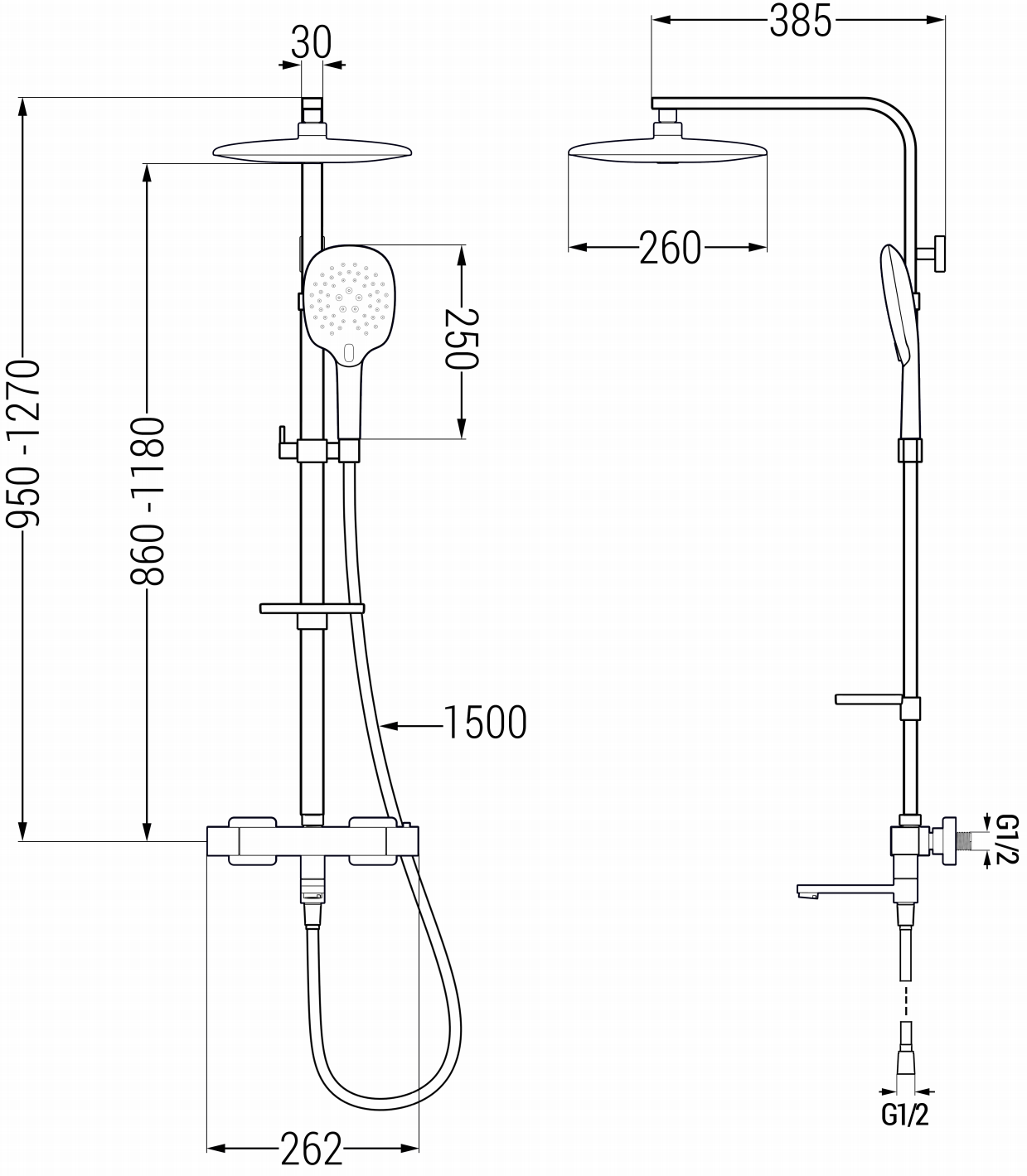 Hauteur: 950-1270 mm