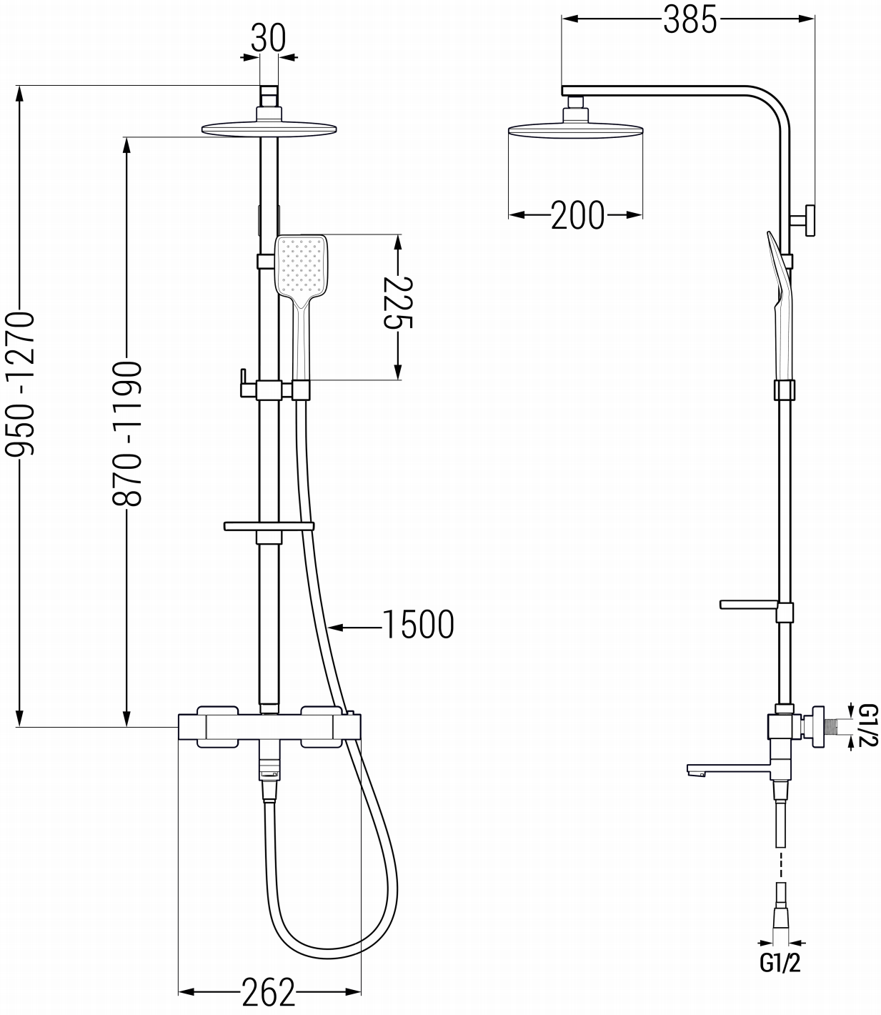 Raccord: G3/4" (haut) et G1/2" (bas)
