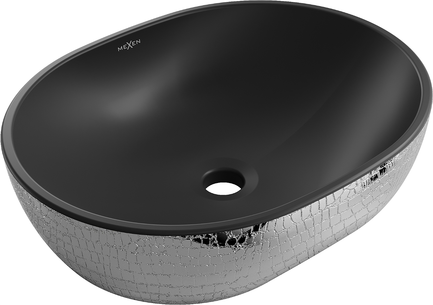 Le lavabo à poser Viki est la parfaite combinaison d'élégance et de fonctionnalité. Il offre un design moderne avec une finition noire mate et un motif écailles argent. Conçu en céramique sanitaire durable, il résiste aux dommages. Sa forme ovale et ses dimensions 48,5 x 35 x 14 cm s'intègrent parfaitement dans toute salle de bain. Grâce à sa surface brillante, il est non seulement esthétiquement plaisant mais aussi facile à nettoyer. L'absence d'orifices pour le robinet et de trop-plein ajoute à son caractère minimaliste.