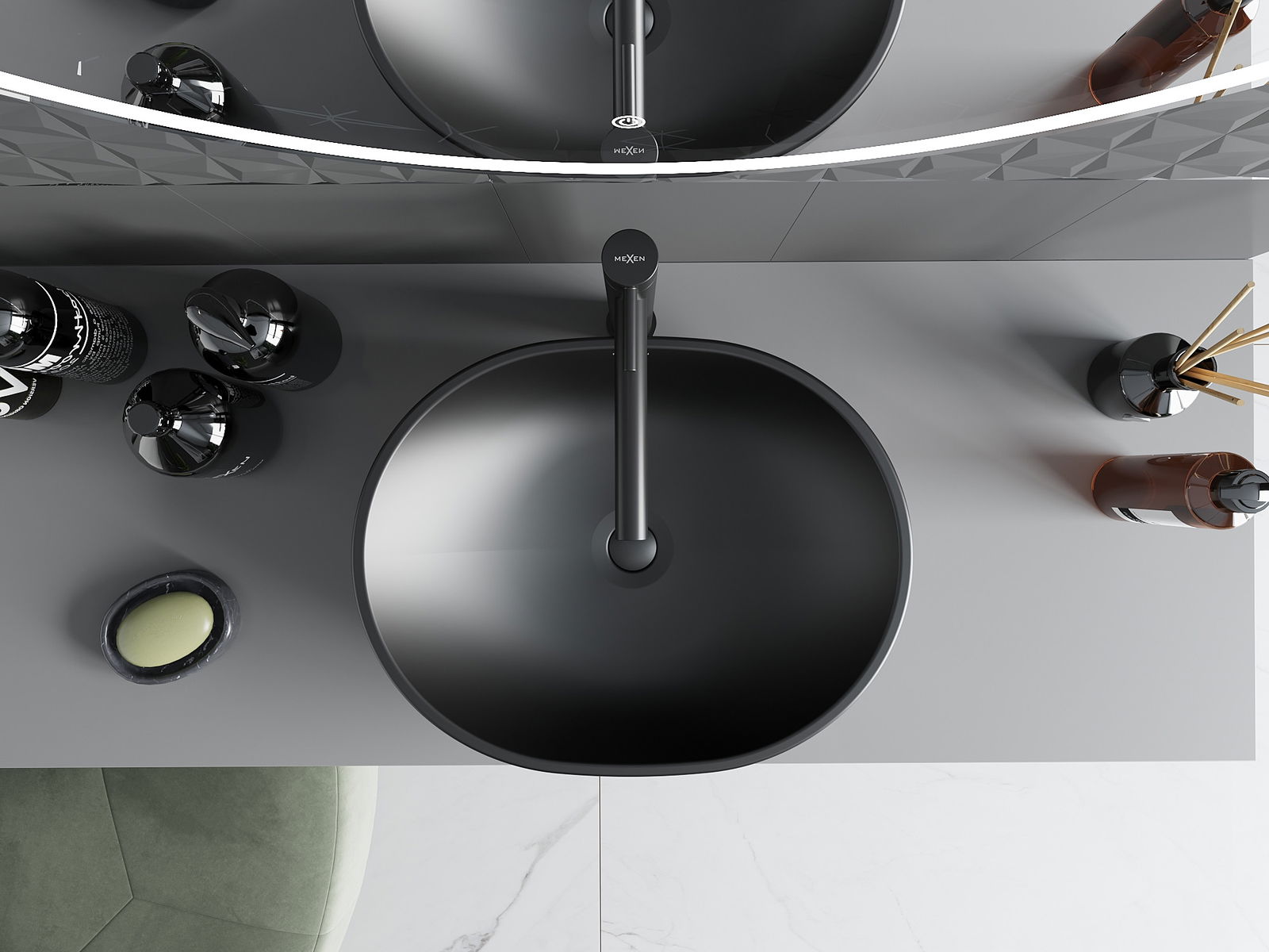 Le lavabo vasque est une solution idéale pour les salles de bain modernes. Les dimensions de 48x35 cm et une profondeur de 11,5 cm garantissent la fonctionnalité, tandis que le noir mat élégant avec des accents argentés ajoute du style. Fabriqué en céramique sanitaire, le lavabo se caractérise par une surface protectrice et un éclat. L'absence d'orifice trop-plein et pour robinet le rend idéal pour les aménagements minimalistes. Sa forme ovale et son design subtil permettent au produit de s'intégrer parfaitement dans n'importe quel espace.