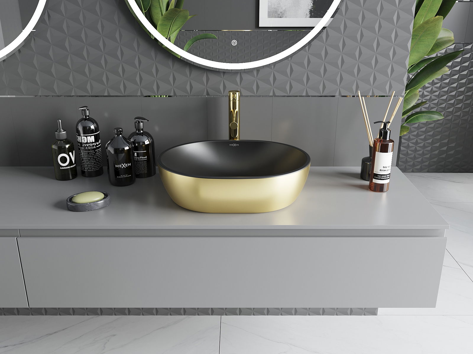 Mexen Viki est un élégant lavabo sur plan mesurant 48 x 35 cm, dans une combinaison saisissante de noir mat et d'or. Sa forme ovale originale et sa surface brillante ajoutent une touche moderne à la salle de bain. Réalisé en céramique sanitaire de haute qualité, le lavabo assure durabilité et facilité d'entretien. L'absence d'orifice de trop-plein et pour robinet en fait un choix parfait pour les agencements minimalistes. Choisissez Mexen Viki pour apporter style et fonctionnalité à votre espace.