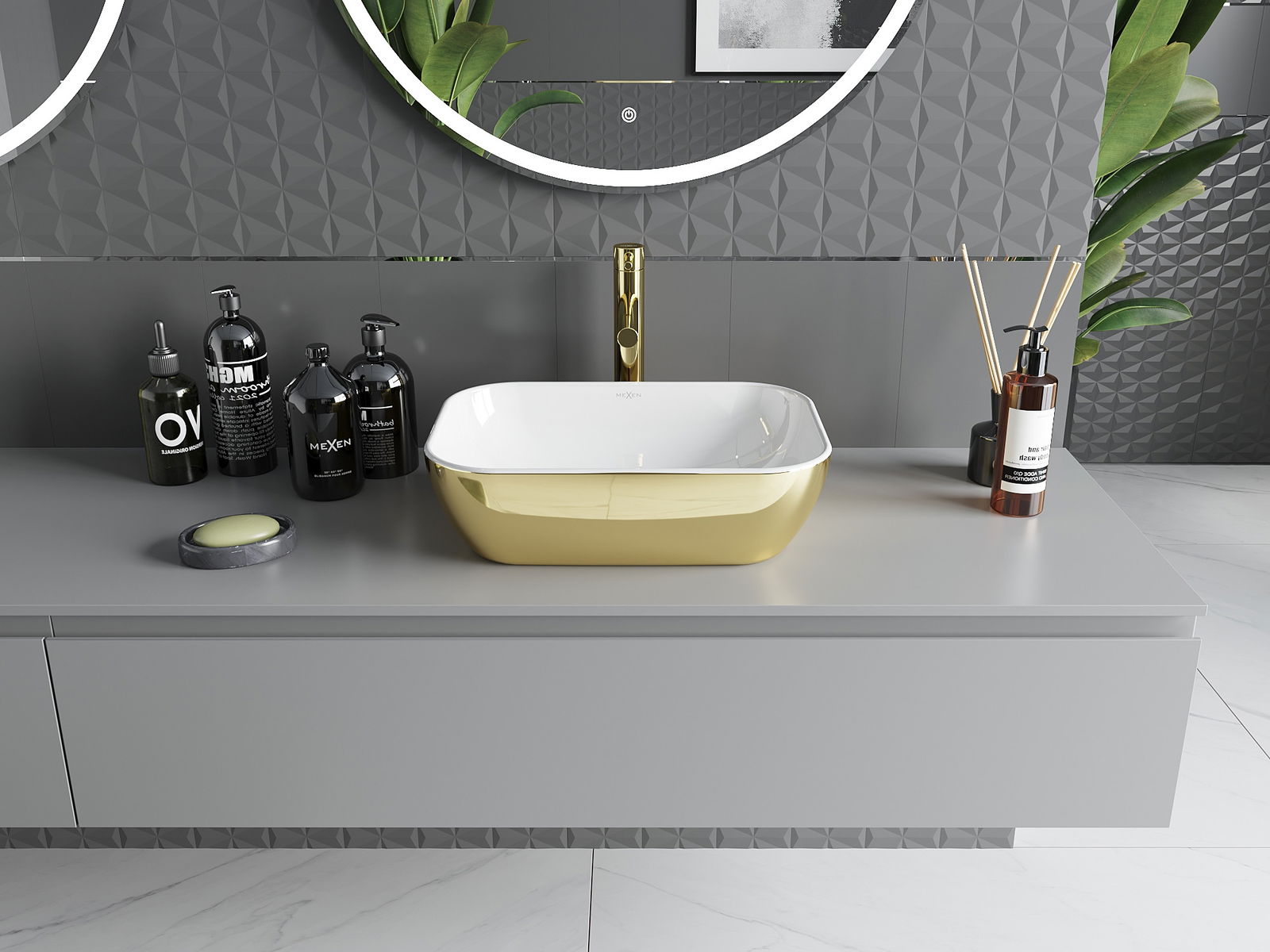 Mexen Rita lavabo à poser 45 x 32 cm, blanc/doré - 21084506