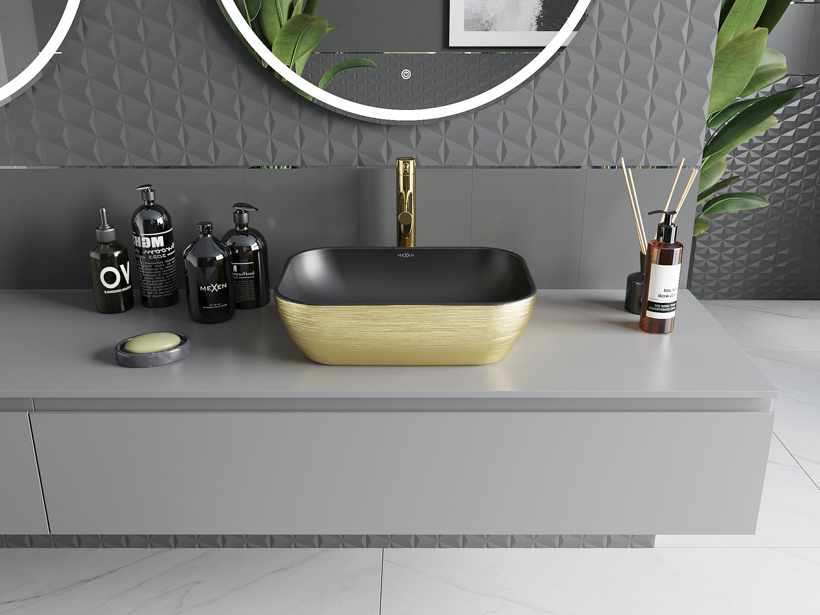 Mexen Rita lavabo à poser 45 x 32 cm, noir mat/doré motif lignes - 21084577