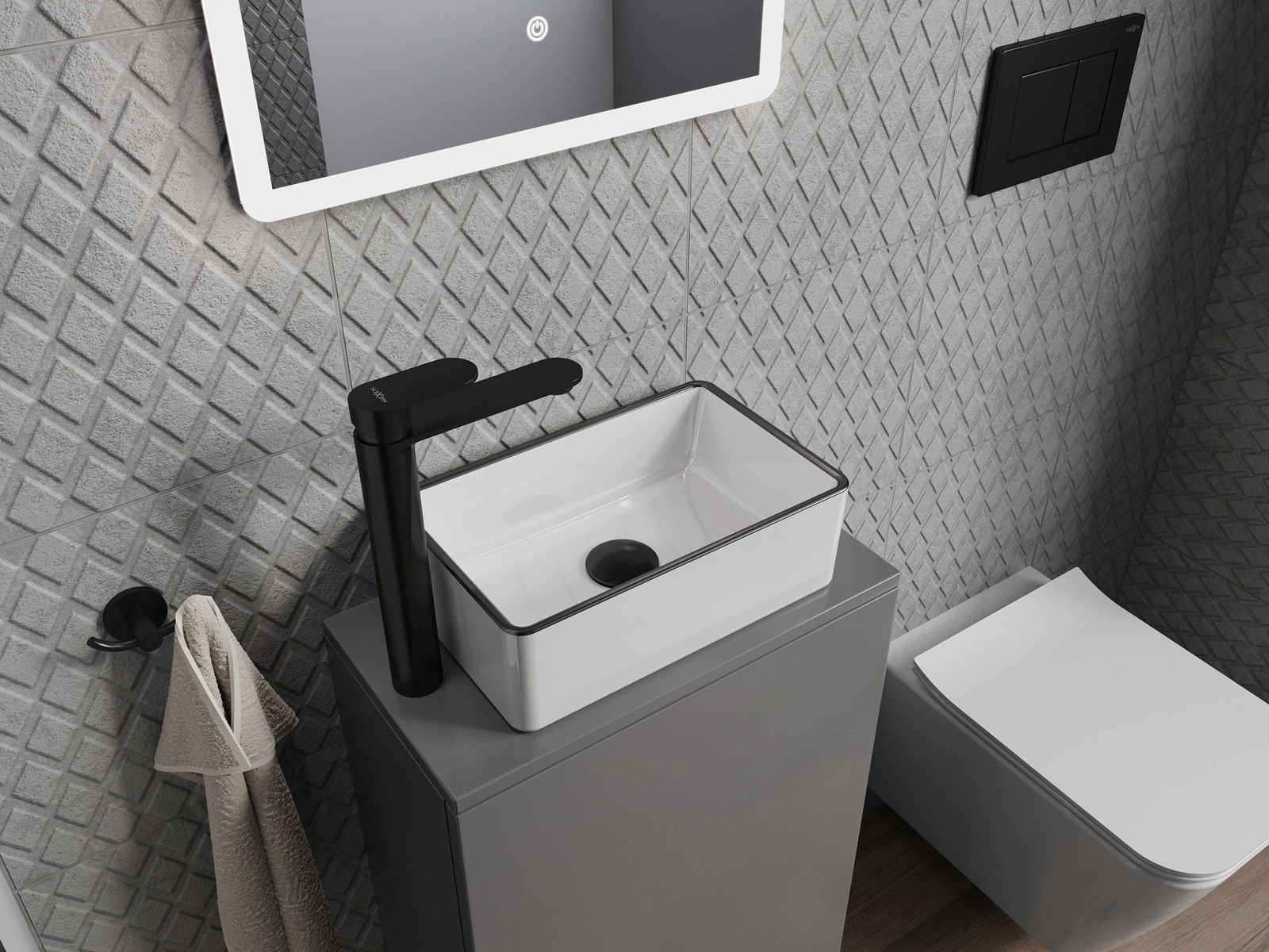 Mexen Nadia lavabo sur comptoir 36 x 23 cm, bord blanc/noir - 21613607