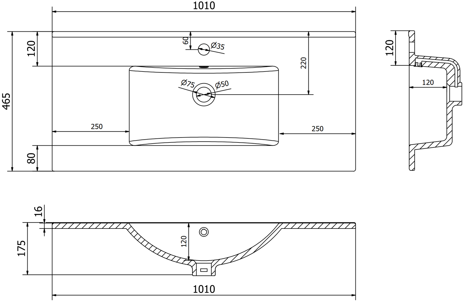 Mexen Atena lavabo encastré dans le plan 101 x 46 cm, blanc - 25011000