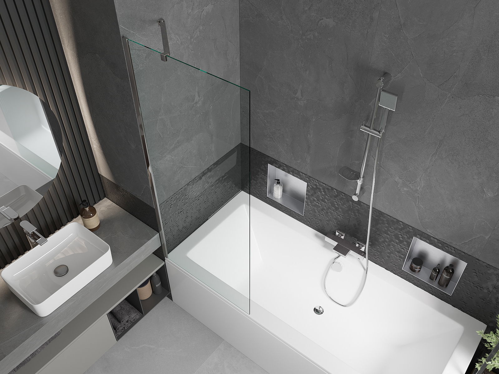 Protection efficace contre le débordement d'eau pendant le bain. Le pare-douche est équipé de joints qui s'adaptent parfaitement à la surface du verre et au bord de la baignoire. Une solution fonctionnelle assurant sécurité et facilité d'entretien.