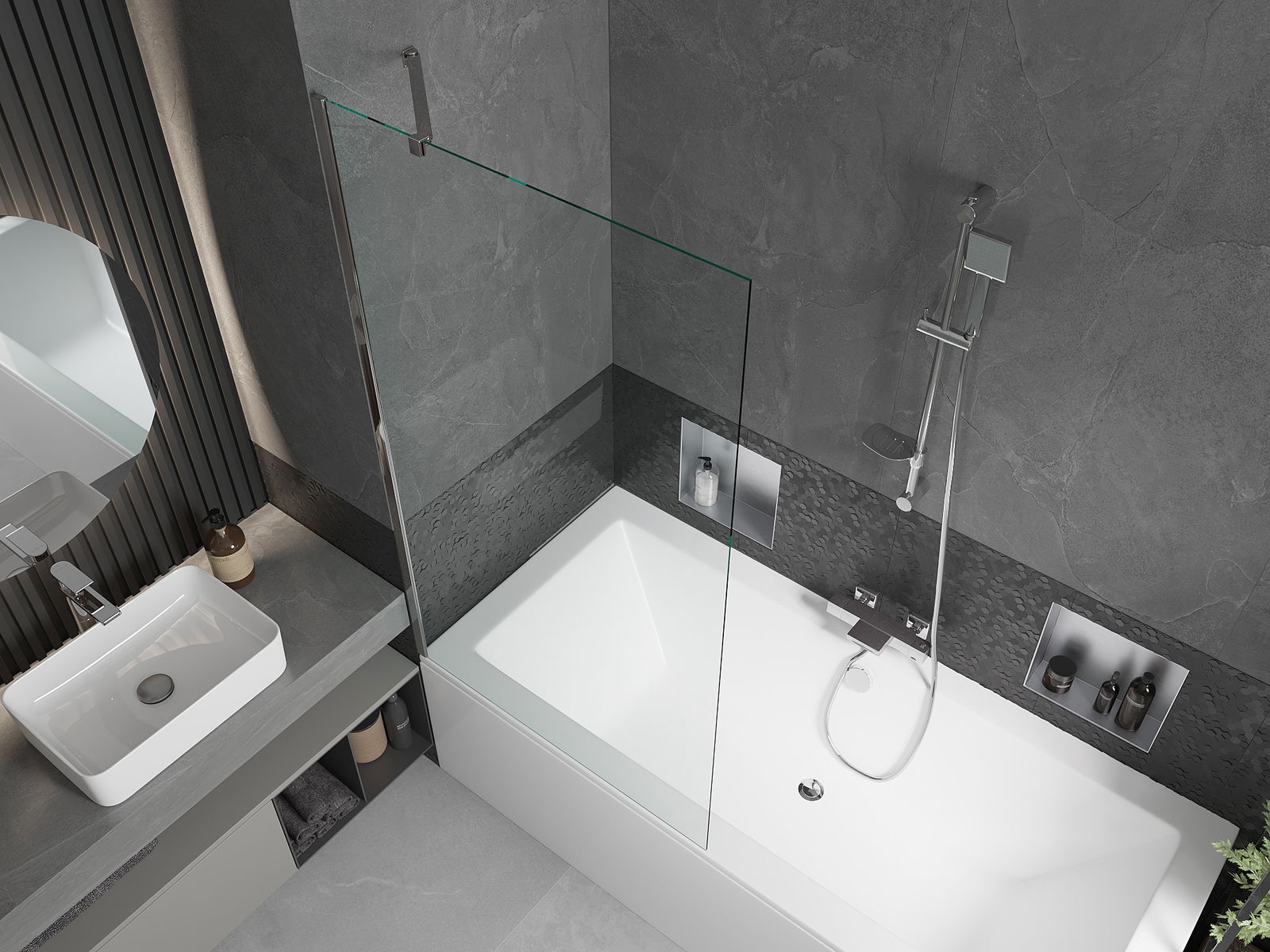 Grâce à l'utilisation d'un système de montage universel, le paravent peut être monté à droite ou à gauche, selon les besoins. De cette façon, vous pouvez facilement concevoir une douche adaptée à l'espace de votre salle de bains.